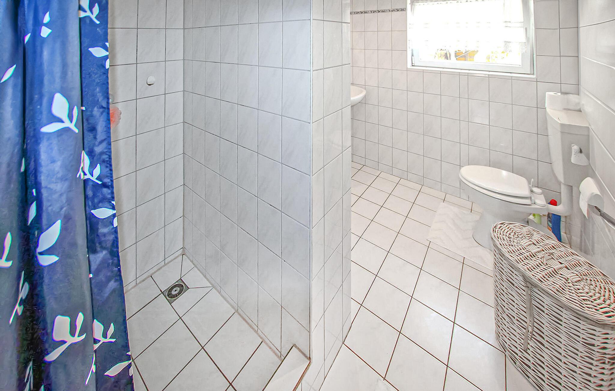 Die acht Ferienhäuser liegen auf einem 2500 qm großen Natur-/Wassergrundstück direkt am Stettiner Haff. Jedes Ferienhaus ist individuell und separat. Vom Grundstück führt ein Weg direkt zum Strand (ca. 50 m). Alle Ferienhäuser verfügen über eine möblierte Terrasse oder einen Außensitzplatz mit Grill und einen Parkplatz direkt am Bungalow. Ausstattung mit: Wohnzimmer (Polstermöbel, Esstisch, TV), 2 Schlafzimmer (1 x Boxspringbett, 1 x im Souterrain über Treppe mit 2 Einzelbetten), Küchenzeile (E-Herd mit Backofen, Kühlschrank mit Tiefkühlfach, div. Küchengeräte), E-Heizung.