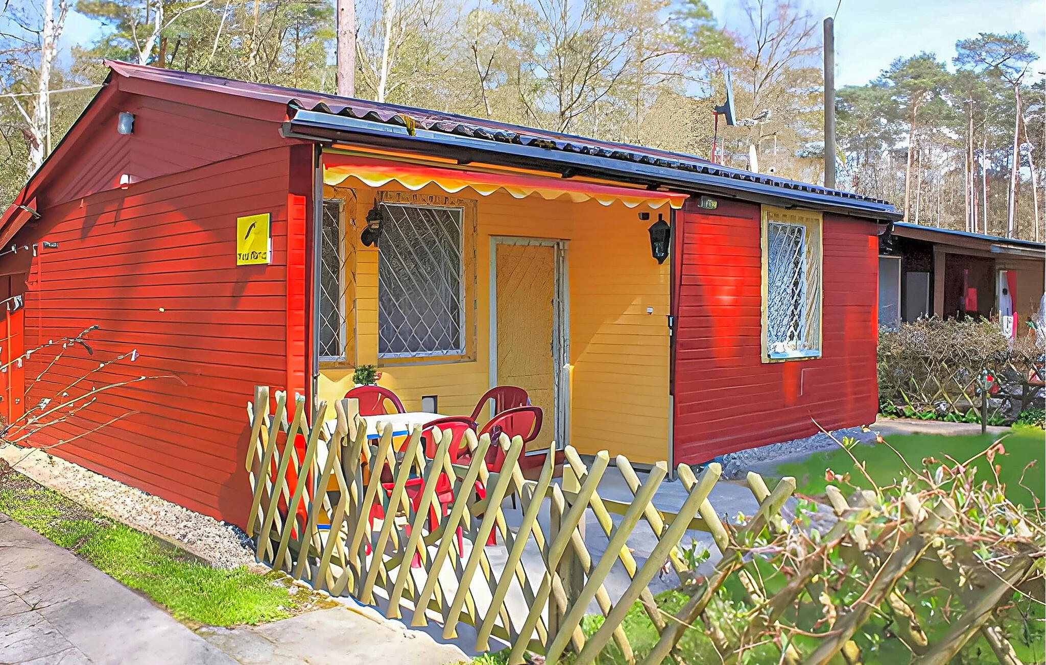 Gemütlicher Sommerbungalow in Bellin, nahe Strand und Wald, mit Terrasse und Parkplatz auf eingezäuntem Grundstück.