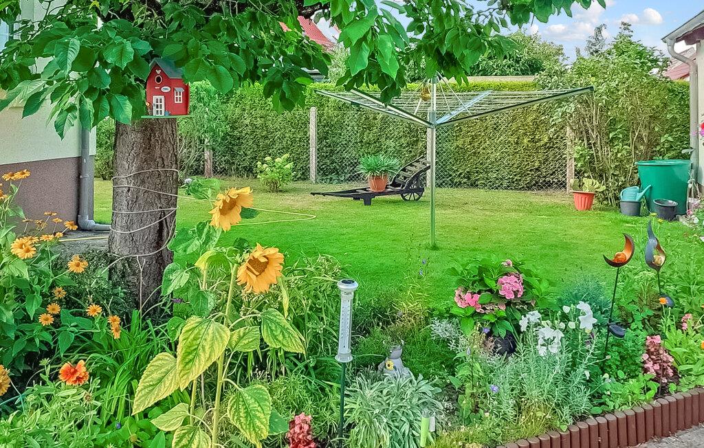Das Ferienhaus befindet sich separat auf dem 1300 qm großen Wohngrundstück des Eigentümers in ruhiger Orts- und Waldrandlage. Der Badestrand am Stettiner Haff ist ca. 600 Meter entfernt. Es ist ausgestattet mit: Wohnraum (Polstermöbel, TV, Radio), offene Küchenzeile mit Pantry (E-Kochfeld, Kühlschrank mit Tiefkühlfach, Mikrowelle, Esstisch, div. Küchengeräte), Schlafraum über Treppe (Doppelbett, Rollbett), DU/WC, Zentralheizung. Zur Verfügung stehen möblierte Terrasse bzw. Sitzecken auf dem gepflegten und ruhigen Gartengrundstück, Grill, Fahrradraum und PKW-Stellplatz. Im Gesamtpreis inkl.: Bettwäsche, Handtücher, Wasser- und Energieverbrauch, Endreinigung. Vor Ort zu zahlen: Kurtaxe. Haustiere sind in dieser Unterkunft nicht gestattet.