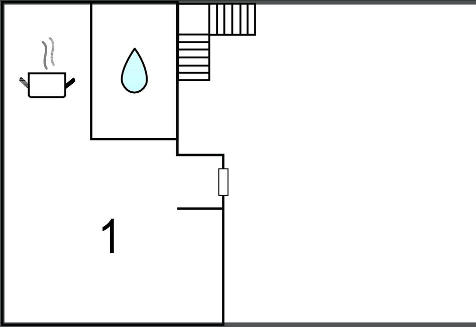 Die kleine Einraum-Ferienwohnung befindet sich separat im Obergeschoss. Sie wurde 2015 modernisiert und ist ausgestattet mit einem kombinierten Wohn-/Schlafraum (2 zusammenstellbare Polsterliegen, Sitzecke, TV), einer offenen Küchenzeile (E-Kochfeld, Kühlschrank mit Tiefkühlteil, div. Küchengeräte), DU/WC und Zentralheizung.
