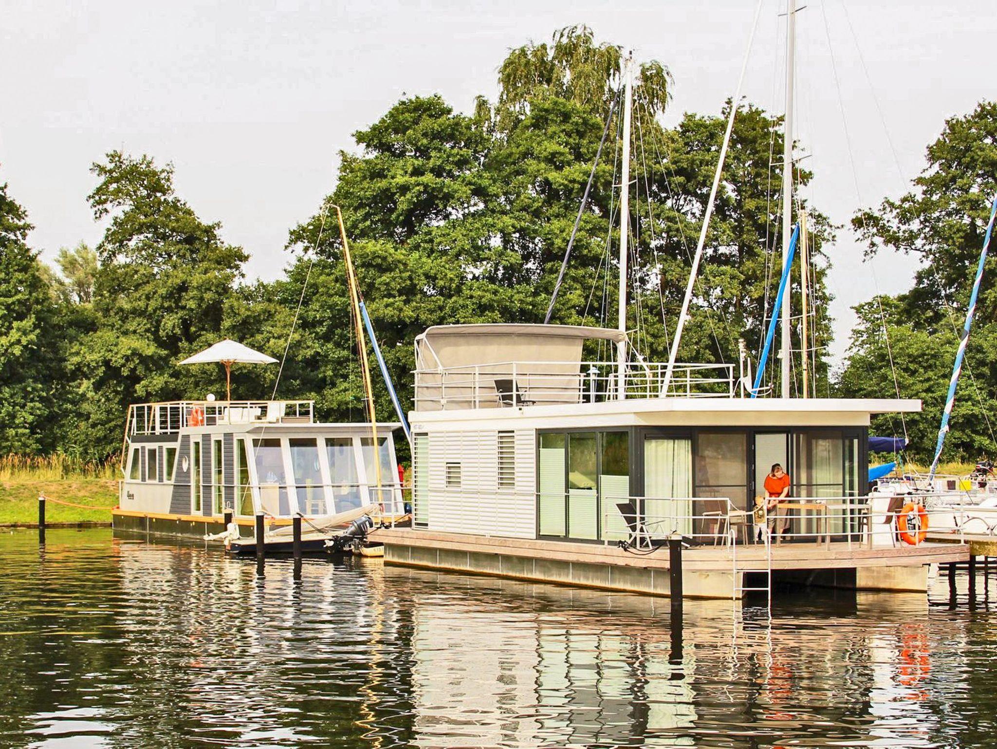 Erleben Sie maritimen Komfort im Floating House Undine direkt an der Uecker mit Strandnähe und herrlichem Wasserblick.