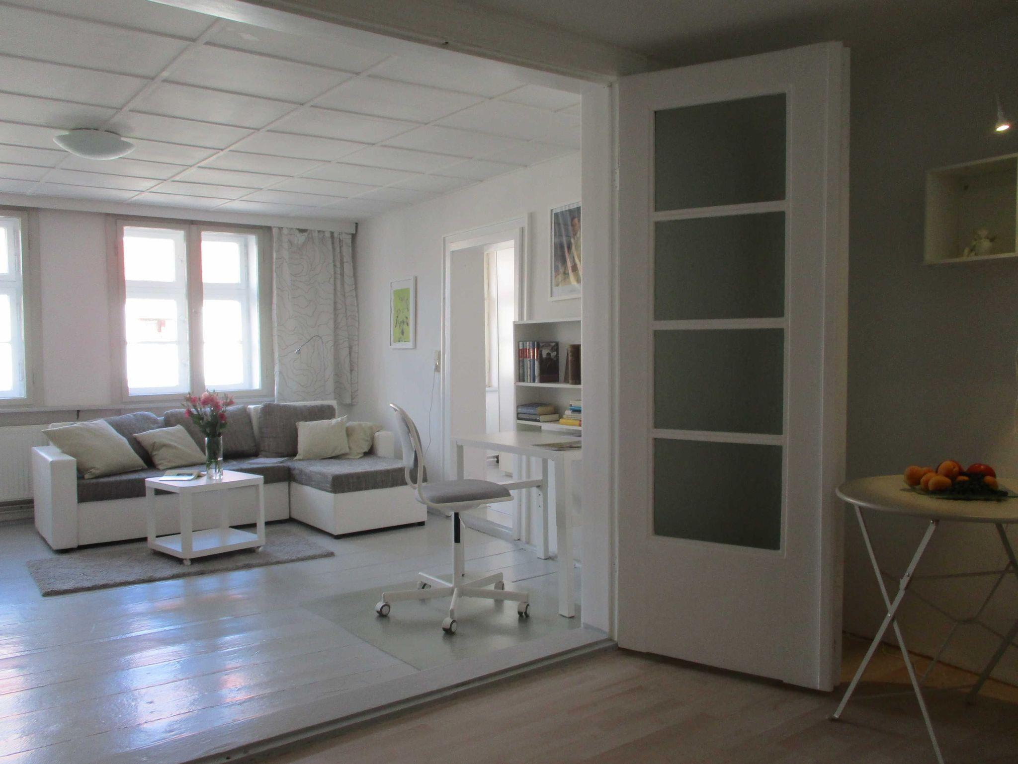 Gemütliche Wohnung mit Blick auf den Markt. 45 m2 für zwei Personen, ganzjährig und gern auch länger mietbar.