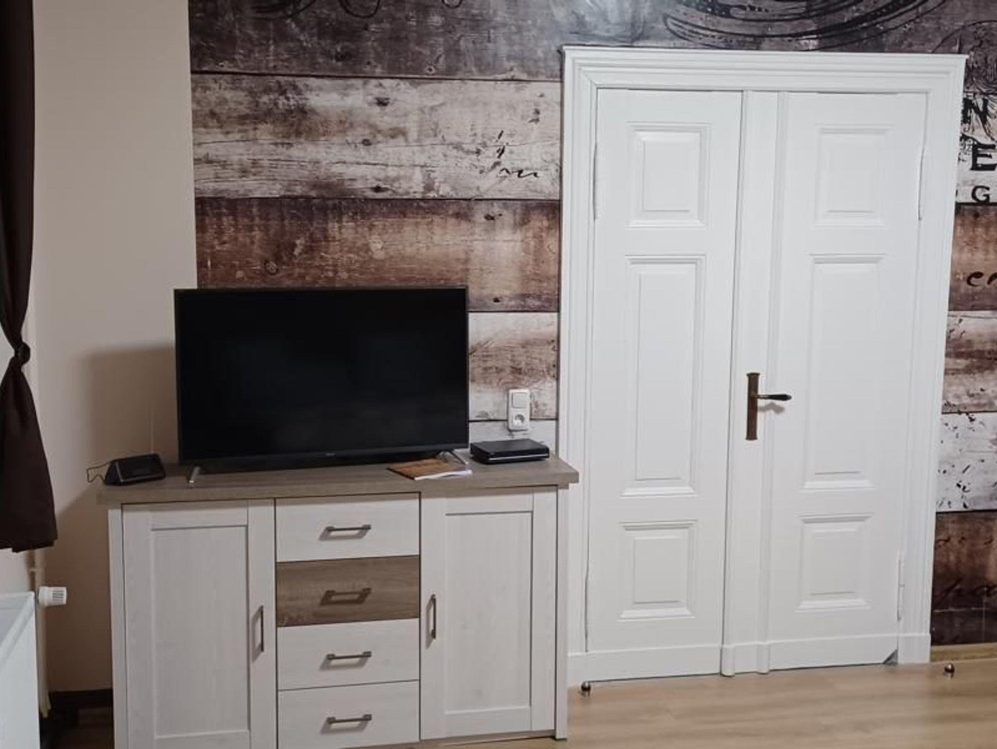 Sehr schöne, liebevoll renovierte 2-Raum-Wohnung in einem 1905 erbauten Mehrfamilienhaus. Die Wohnung ist mit neuen Möbeln ausgestattet und im altertümlich-maritimen Stil gestaltet. sie verfügt über Annehmlichkeiten wie einen Wohn- und Küchenbereich, einen Kamin, eine Waschmaschine und eine ebenerdige Dusche. Das Schlafzimmer ist mit einem großzügigen Doppelbett, TV und einer Leseecke mit einem gemütlichen Sessel ausgestattet.