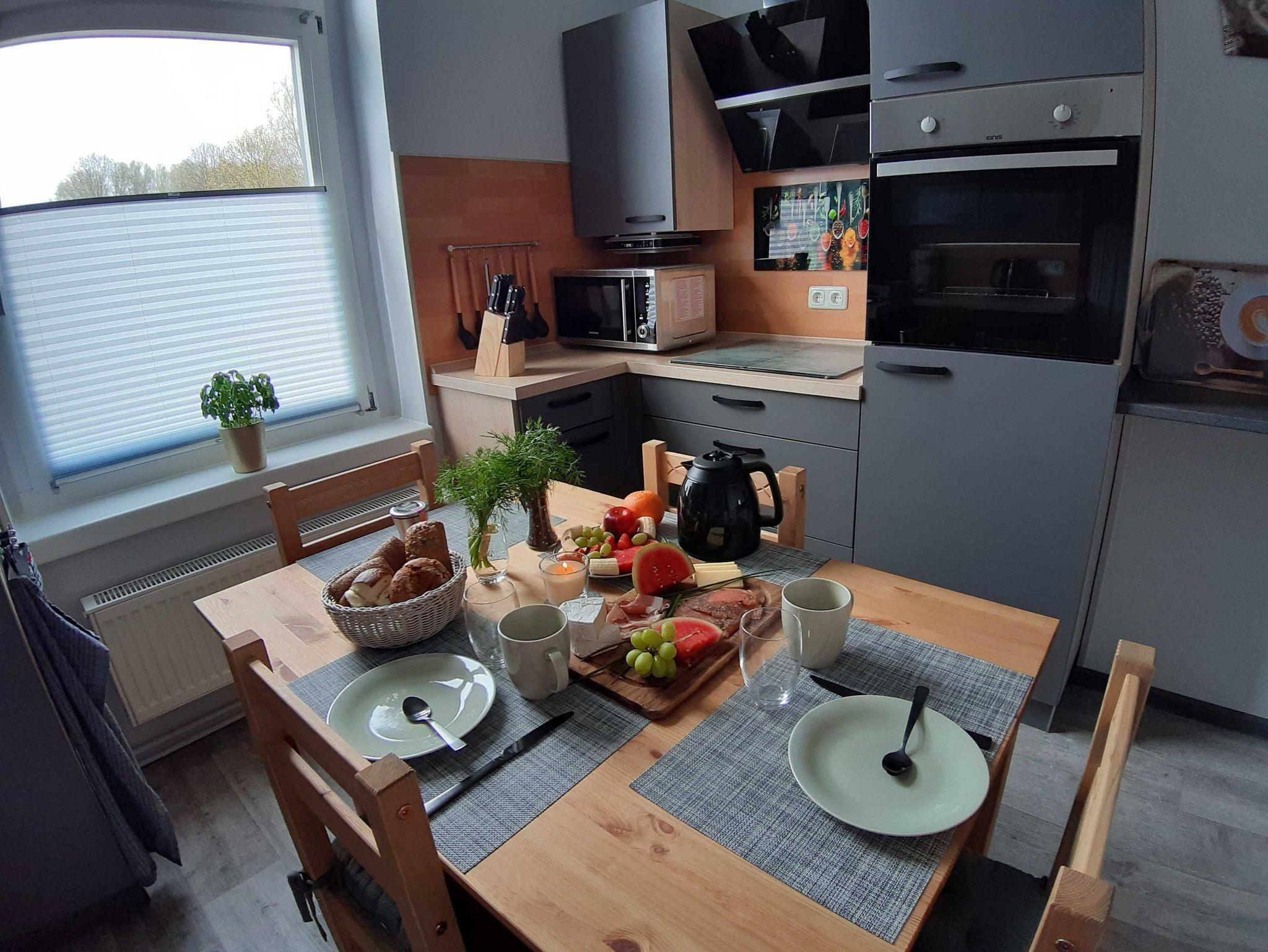 Gemütliche, frisch renovierte Ferienwohnung mit Kachelofen und moderner Küche in Ueckermünde.