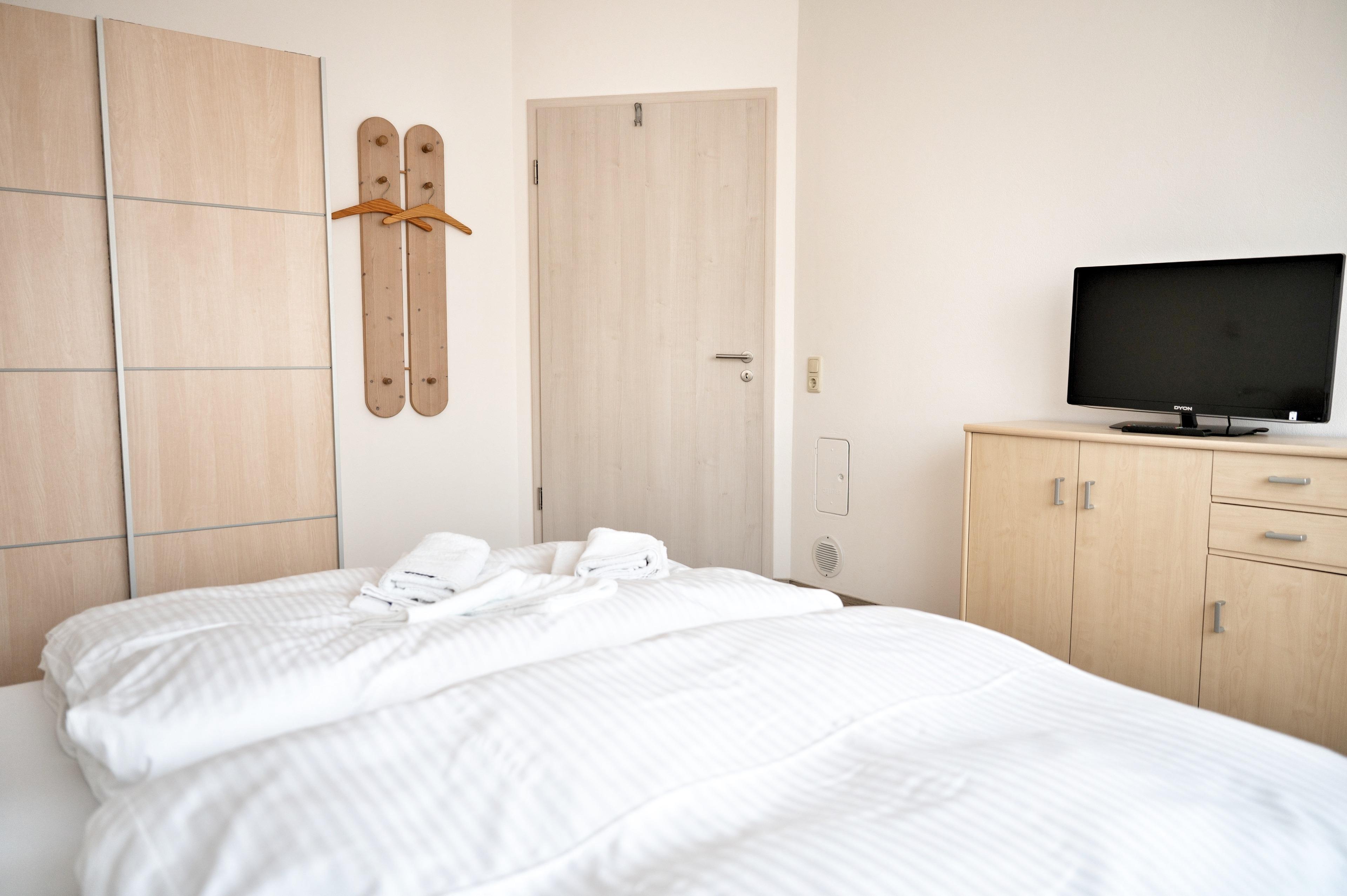 Ihr Schlafzimmer ist mit einem großes Doppelbett mit einer Liegefläche von 180 cm x 200 cm ausgestattet. Des weiteren finden Sie hier für Ihre Nutzung Nachttische und Verstaumöglichkeiten. Das Badezimmer ist mit einer großen Dusche ausgestattet. Ihre mitgebrachten Badezimmerutensilien finden in einem maritimen Regal ihren Platz.