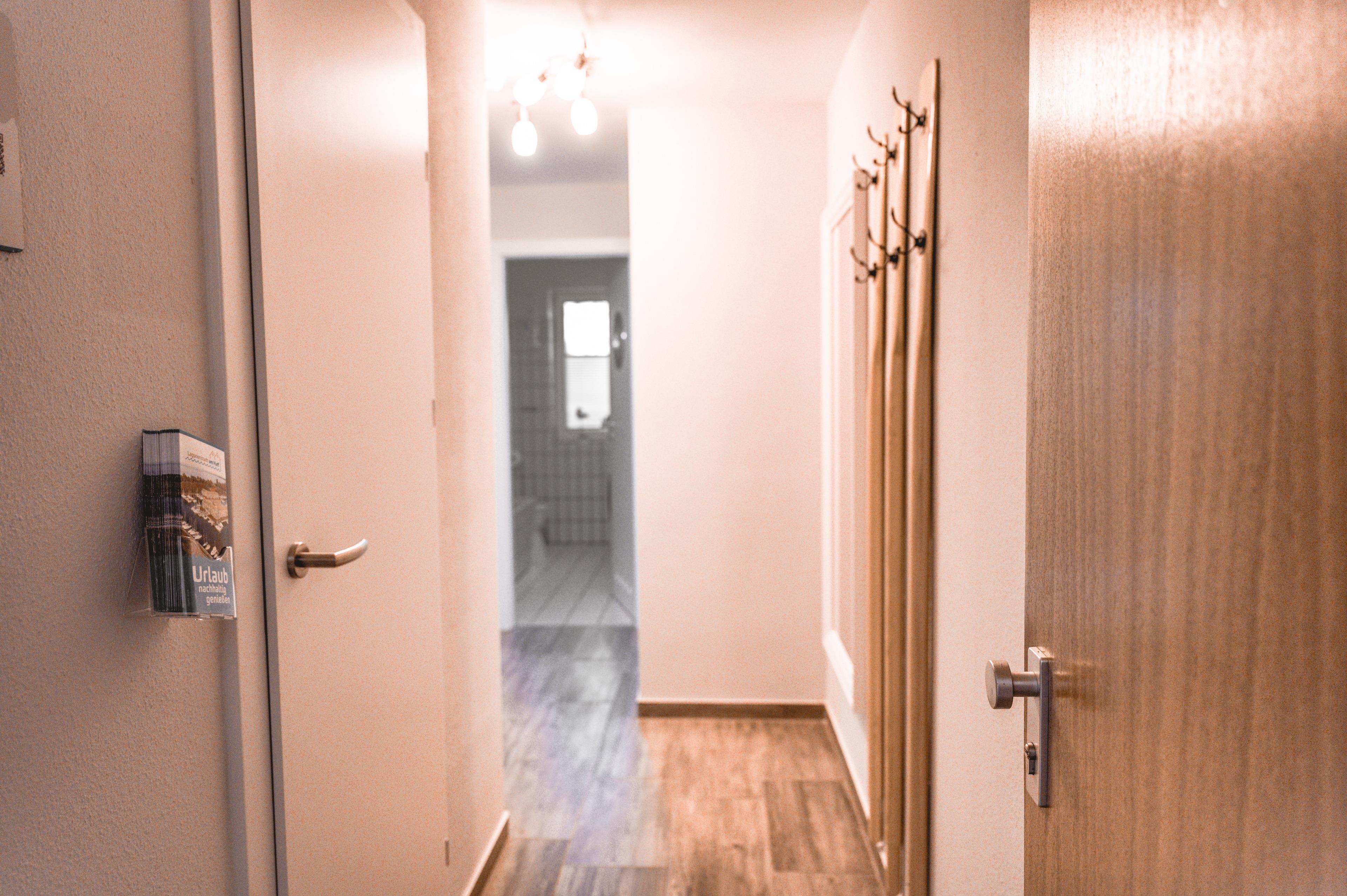 Ihr Badezimmer hat eine Badewanne mit Duschecke, Ablageflächen eine Waschmaschine und auch ein Fön sind hier für Sie vorhanden. Im Flur finden Sie eine Garderobe, einen großen Spiegel und Reinigungsgeräte vor. Zusätzlich steht Ihnen hier eine kleine Kammer zur Verfügung.