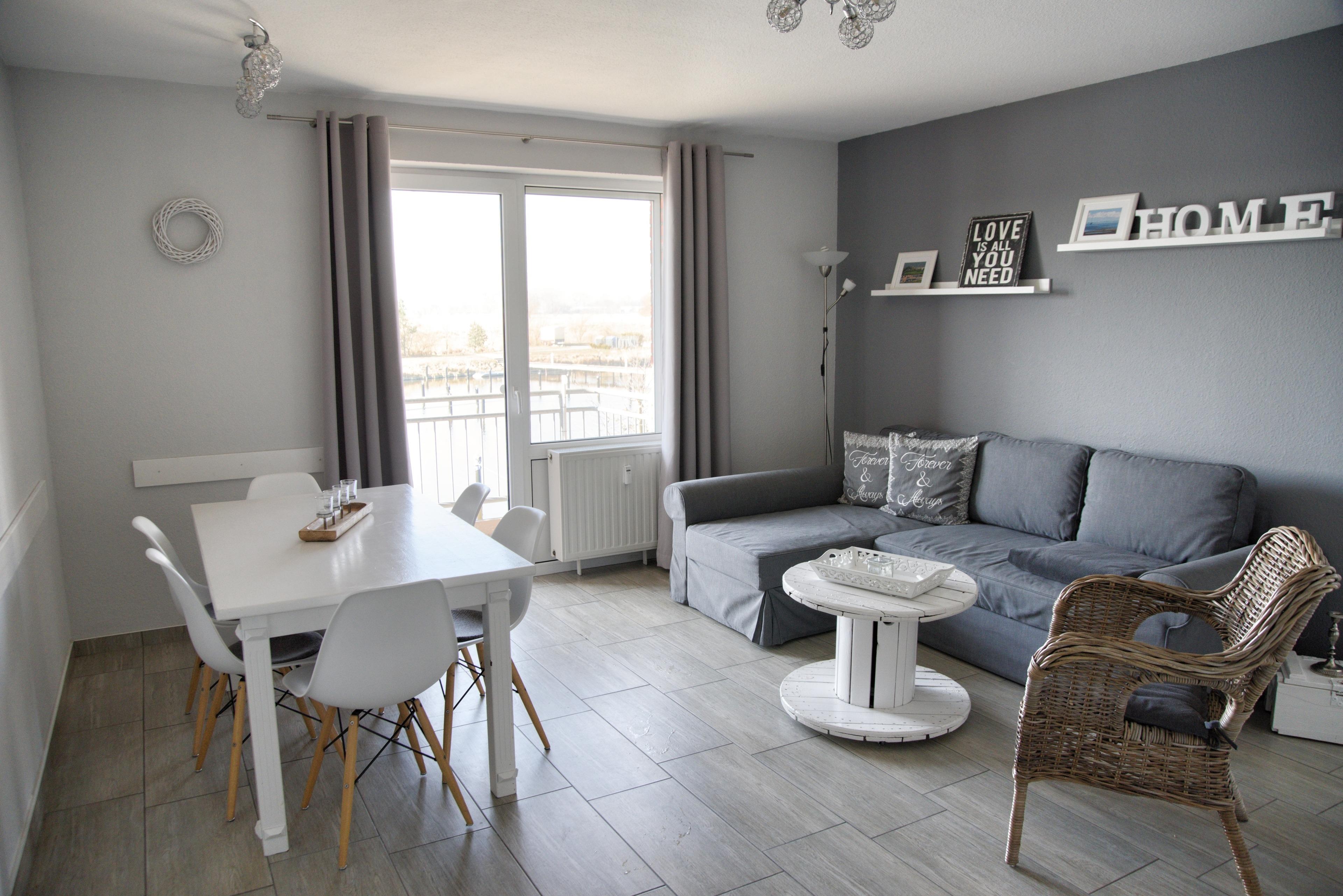 Hochwertige Ferienwohnung in Ueckermünde mit Hafenblick, zwei Balkonen und maritimem Flair.