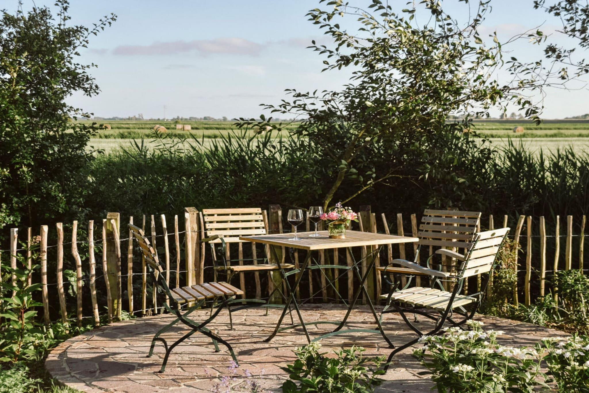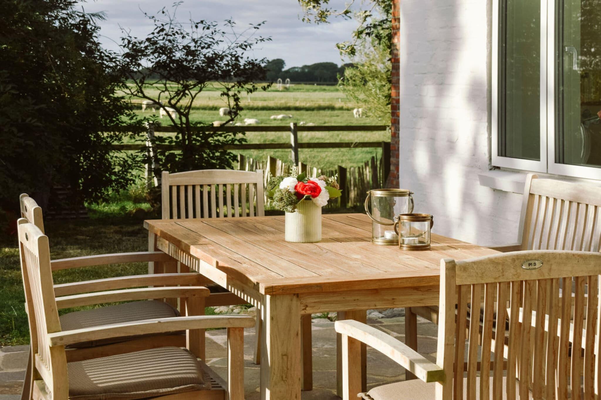 Entdecken Sie das liebevoll sanierte Reetdachhaus Huus Uelvesbüll mit Sauna und weitem Blick auf die Marschlandschaft Eiderstedts.