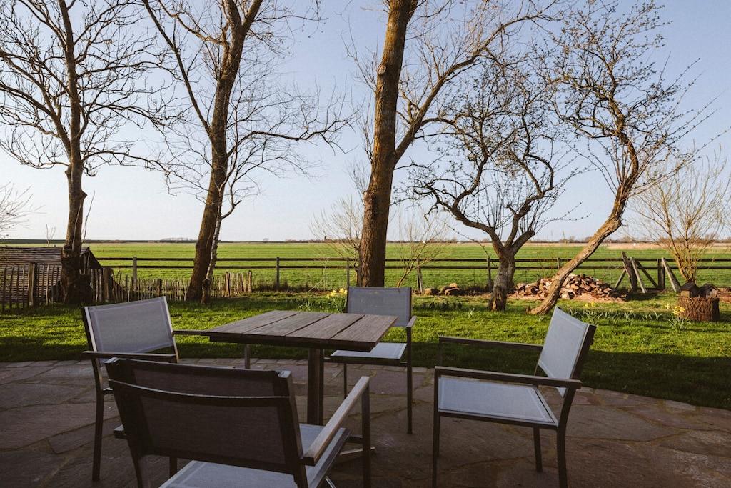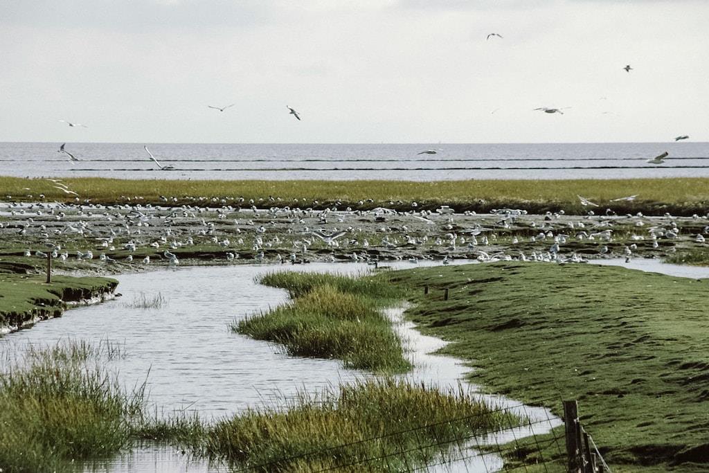 Erleben Sie das charmante, sanierte Reetdachhaus Huus Uelvesbüll mit skandinavischer Einrichtung und Sauna inmitten der Marschlandschaft Eiderstedts.