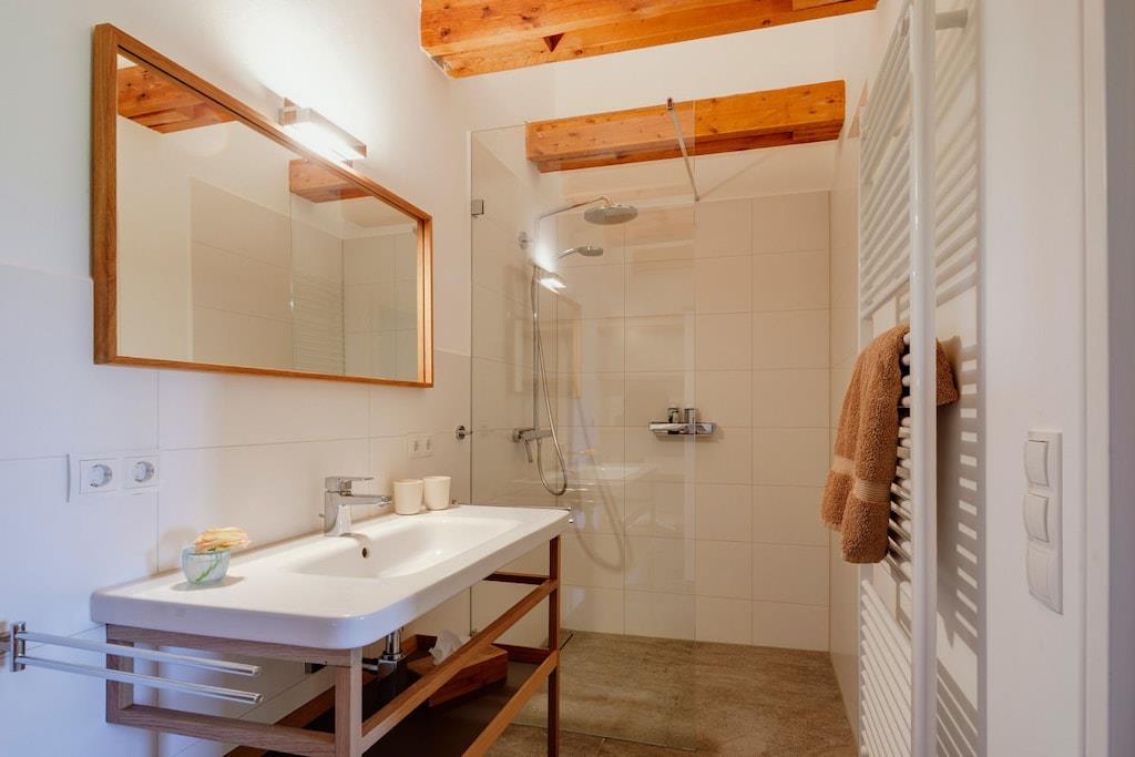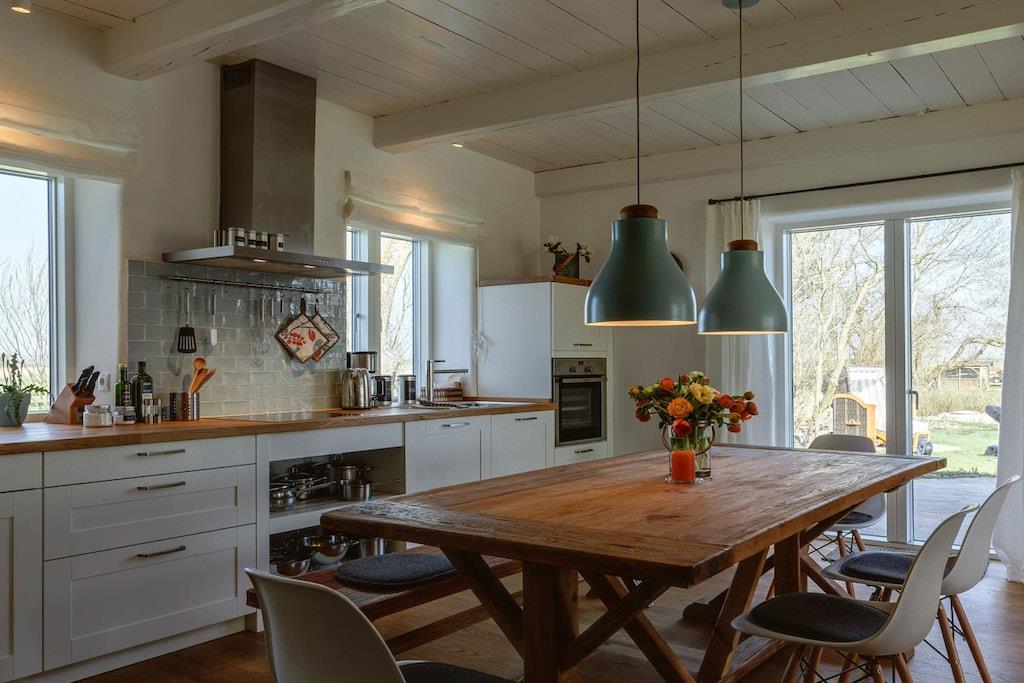 Inmitten der weiten Marschlandschaft Eiderstedts steht unser fast 120 Jahre altes Reetdachhaus Huus Uelvesbüll, das wir 2017 mit Liebe zum Detail grundlegend saniert haben. Aus jedem Fenster unseres lichtdurchfluteten Hauses mit den drei Hausteilen Ost, Süd und West, schauen Sie in die Weite: auf Deiche, Felder und grasende Schafe. Die äußere Weite wird auch innen spürbar: durch eine schnörkellose, skandinavisch inspirierte und sehr hochwertige Einrichtung und Ausstattung. In der Wohnung Ost finden Sie auf 150qm eine Wohnküche mit Jugendstil-Kaminofen und angrenzendem Wohnzimmer und Terrasse, drei Schlafzimmer für bis zu 6 Personen (7. Person auf Anfrage), zwei Bäder sowie eine Gästetoilette. Im Haus stehen Ihnen ein großzügiger Saunabereich mit Ruheraum sowie ein Hauswirtschaftsraum zur Verfügung. Eine Aufladesäule für E-Autos ist auf dem Parkplatz des Hauses verfügbar.