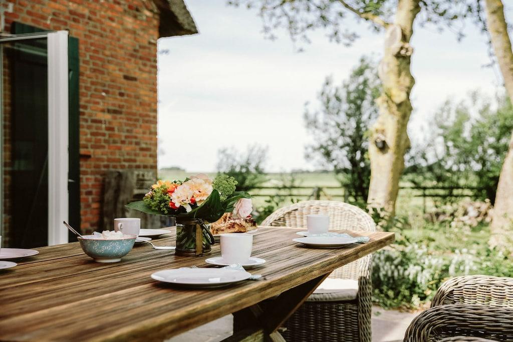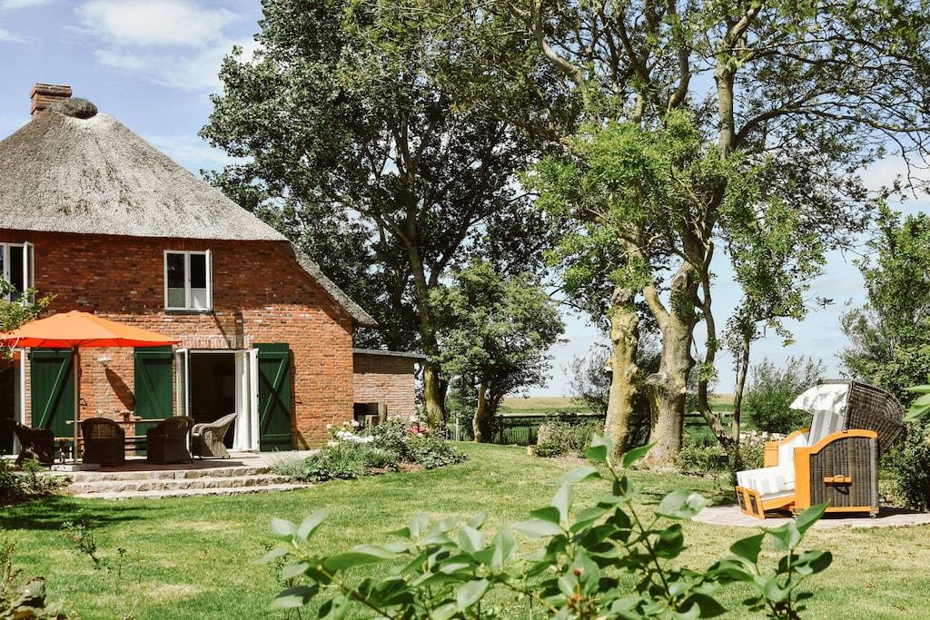 Erleben Sie das liebevoll sanierte Reetdachhaus Huus Uelvesbüll mit Sauna und weitem Blick auf die Marschlandschaft.