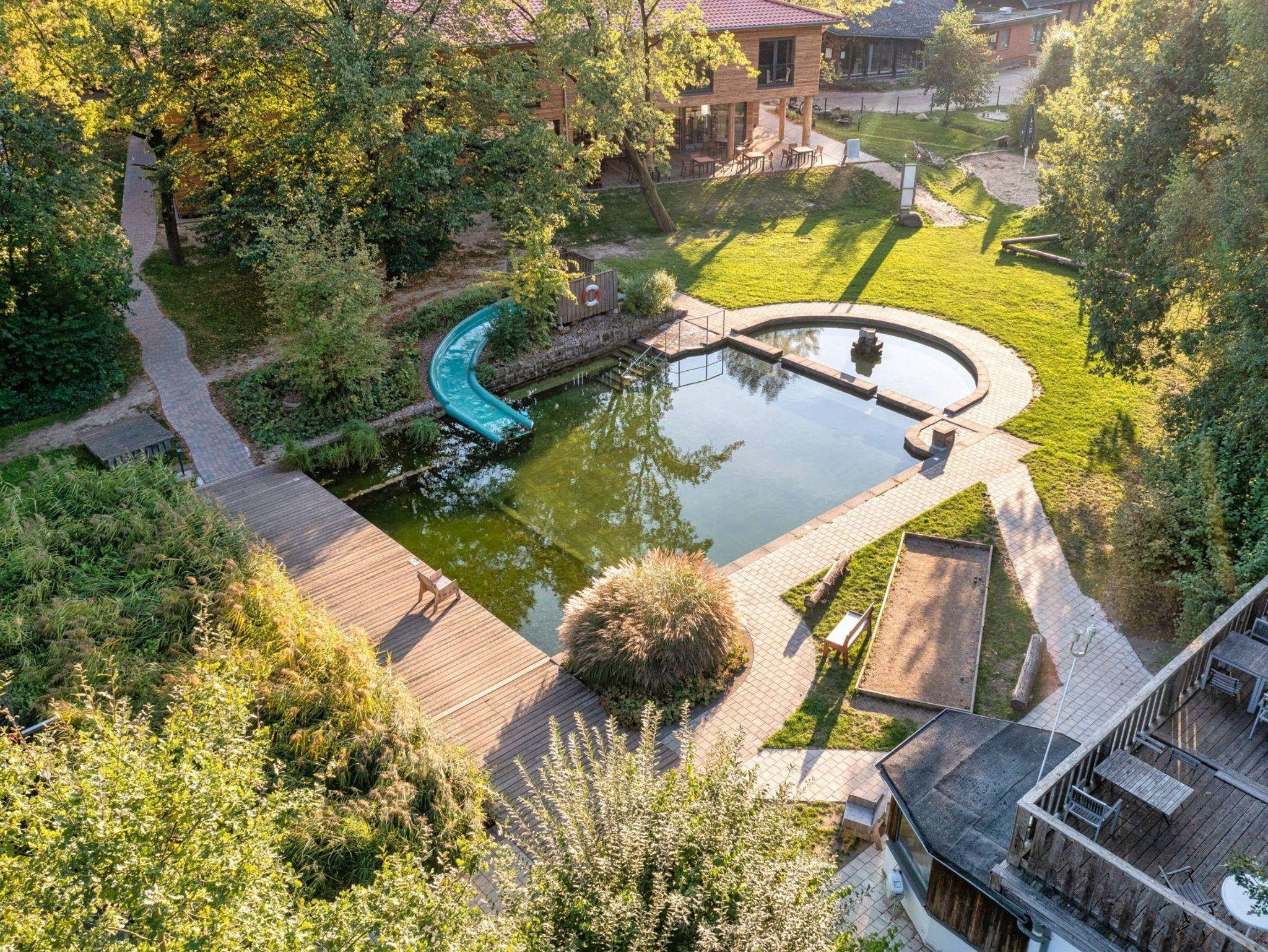 Öko-Camping vom Feinsten: Bioladen, Biobrötchen, Biobier … auf dem kleinen Uhlenköper-Camp am Rande der Heidestadt Uelzen findet jeder seinen Lieblingsplatz: gemütlich und komfortabel für den längeren Aufenthalt, praktisch und einfach für die Stippvisite mit Fahrrad oder Wohnmobil. Während die Großen einen Kaffee auf der sonnigen Terrasse genießen, toben die Kinder im Schwimmbad, auf dem Spielplatz oder am Bächlein. Großes Vergnügen bereitet den Kleinen auch die Beschäftigung mit Natur und Tieren am Platz. Waschmaschine und Trockner für „nachher“ stehen im gepflegten Sanitärbereich bereit.