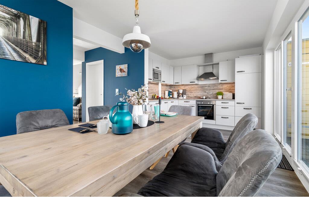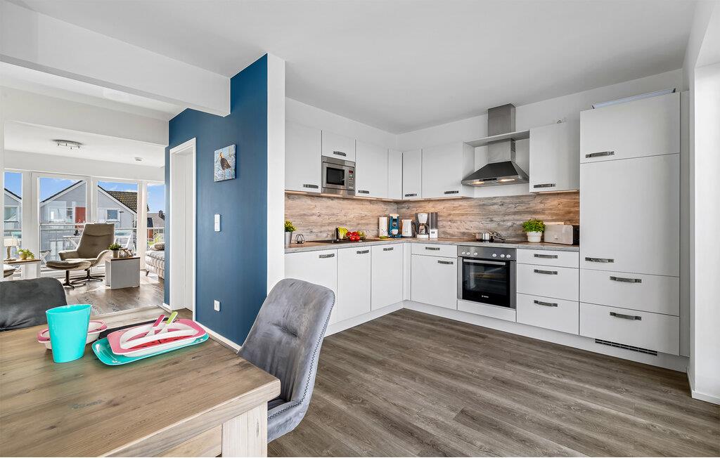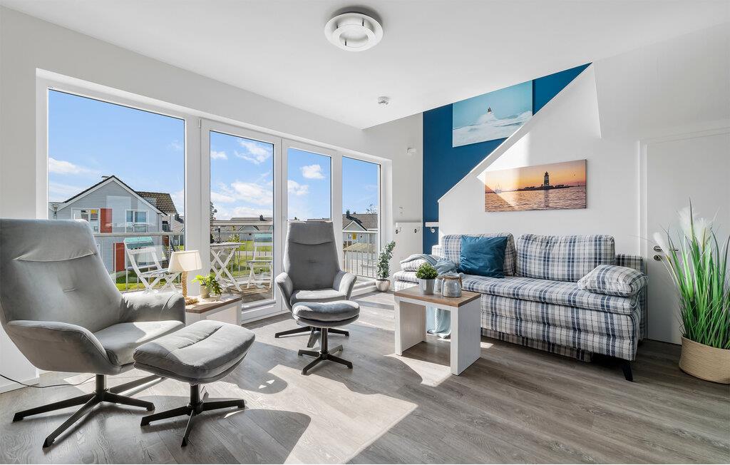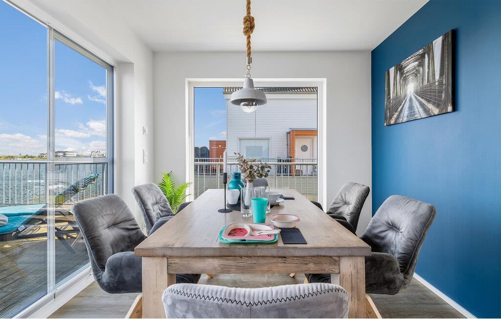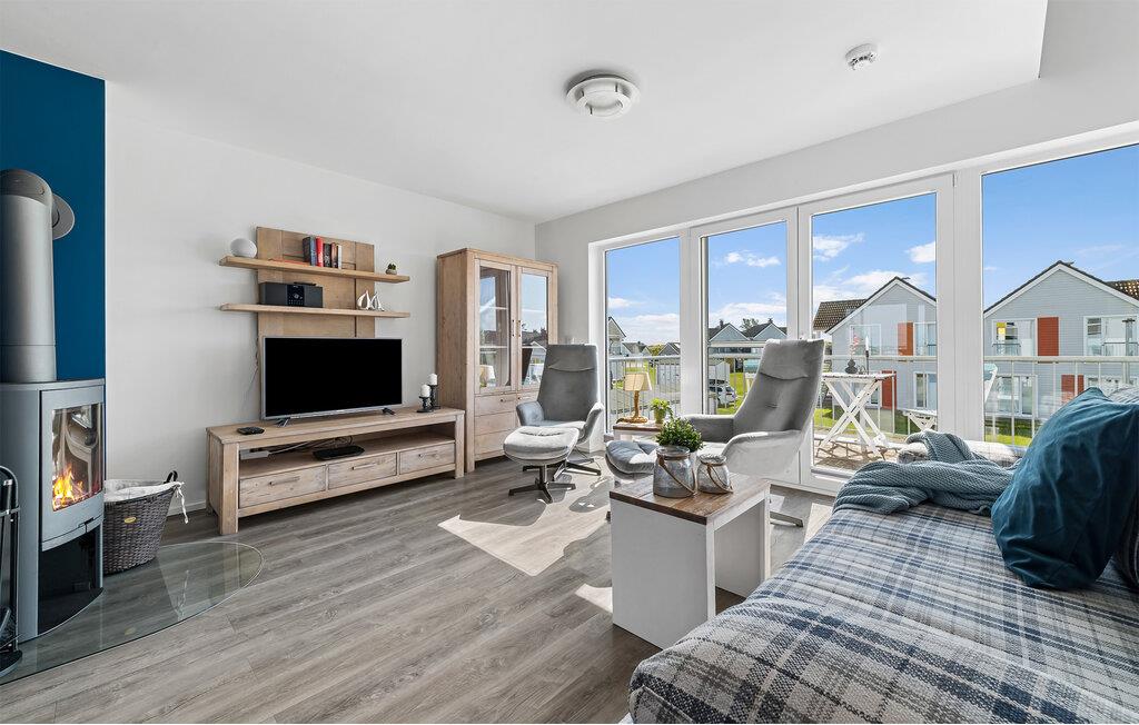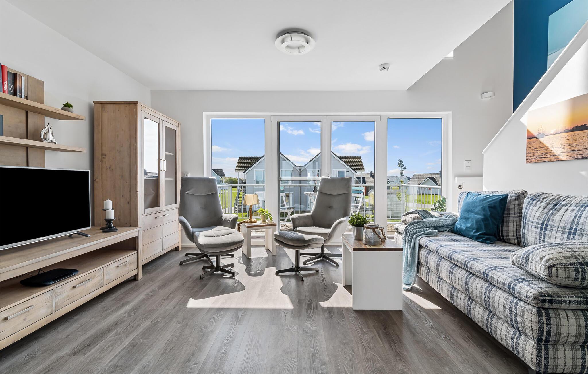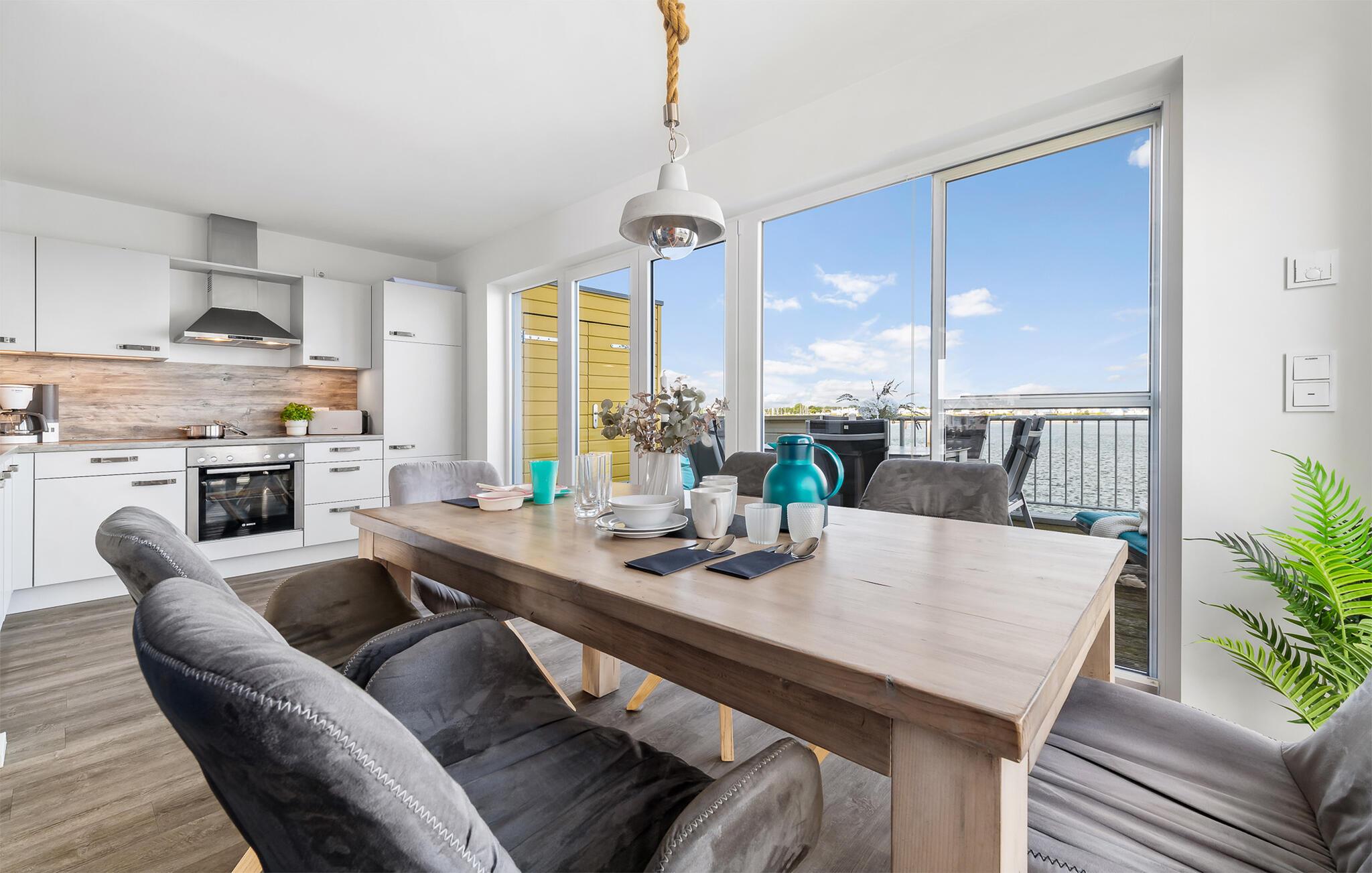 Auf zwei Ebenen erstreckt sich dieses großzügige Domizil, das mit hohen Decken und lichtdurchfluteten Räumen beeindruckt. Der Wohn- und Essbereich auf der ersten Ebene bietet Panorama-Fensterfronten zu den angrenzenden Terrassen, von denen aus ihr traumhafte Ausblicke über den Segel- und Sportboothafen des OstseeResort Olpenitz genießen könnt.