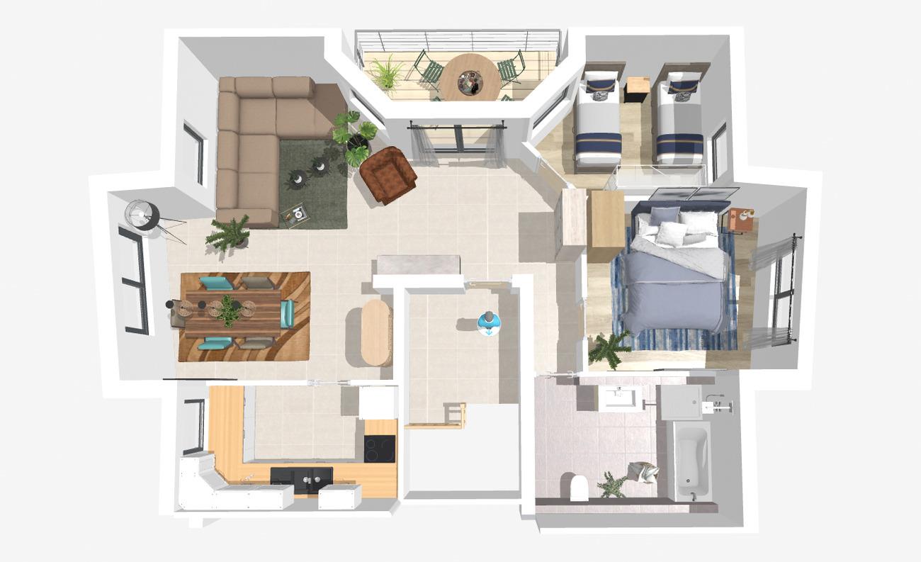 Hier erwarten dich zwei 0,90 m Einzelbetten, die je nach Bedarf zu einem großen Doppelbett zusammengeschoben werden können – ideal für eine individuelle Schlaflösung.