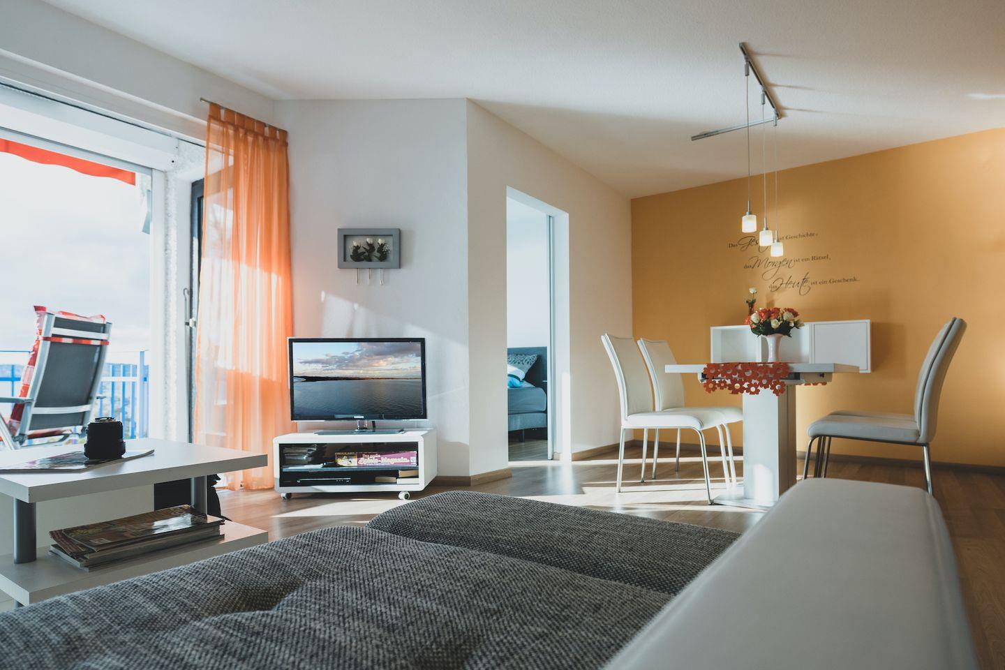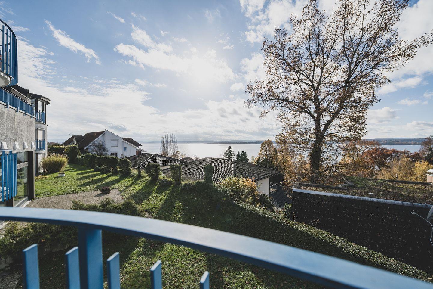 Genießen Sie die natürliche Helligkeit und den atemberaubenden Blick durch die großzügigen Fenster. Die Wohnung wurde mit viel Liebe zum Detail eingerichtet, um Ihnen ein Gefühl von Gemütlichkeit und Zuhause zu vermitteln. Vom Balkon aus können Sie die frische Seeluft genießen und die Tischgruppe unter der Markise lädt zu entspannten Stunden im Freien ein. Der Blick erstreckt sich weit über den Bodensee, das Schweizer Ufer und die majestätischen Alpen im Osten sowie über den Überlinger See und die Insel Mainau im Westen.