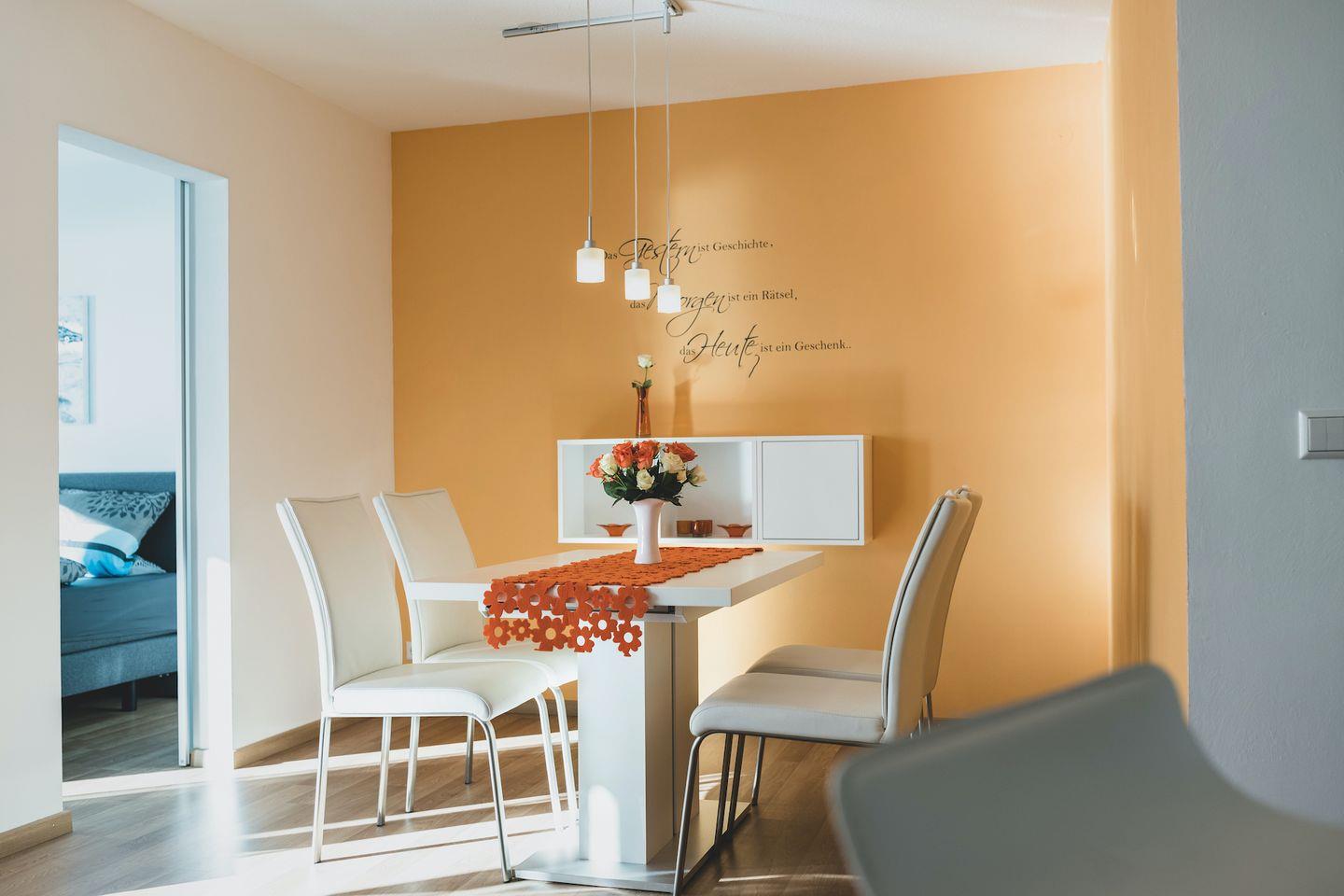 Das moderne Badezimmer verfügt über eine Dusche, ein WC und einen beleuchteten Waschtisch. Zur weiteren Ausstattung gehören WLAN, ein abschließbarer Fahrradraum sowie ein gemeinschaftlicher Tischtennisraum für unterhaltsame Stunden. Bitte beachten Sie, dass die Wohnung rauchfrei ist, um den Komfort aller Gäste zu gewährleisten. Ein eigener Parkplatz steht Ihnen während Ihres Aufenthalts zur Verfügung