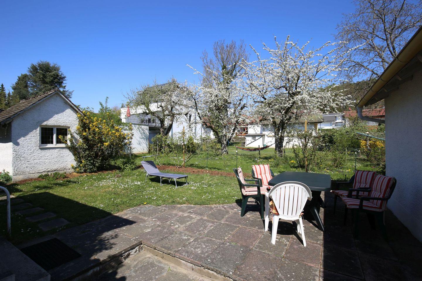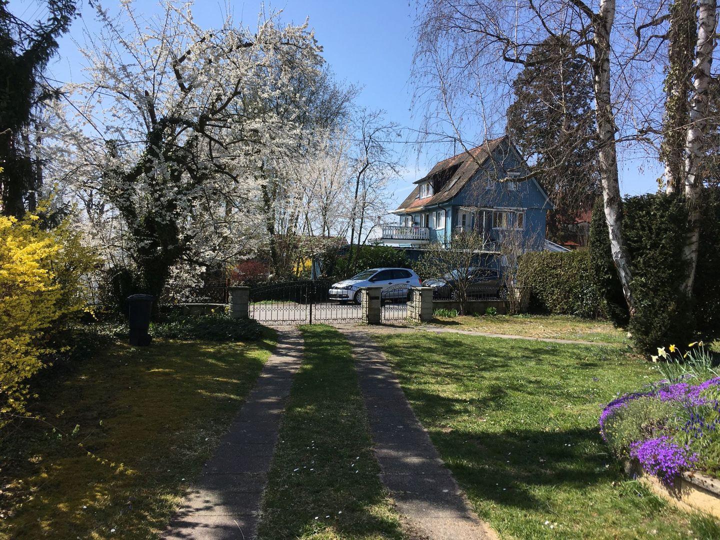 Der großzügige Garten erstreckt sich rund ums Haus und lädt zum Verweilen ein. Die ruhige Wohngegend verspricht wohltuende Erholung. Die Früchte der Obstbäume im Garten warten auf Ihre Ernte und bereichern Ihren Frühstückstisch. Nur wenige Gehminuten entfernt liegt der glitzernde Bodensee, der Sie zu erfrischenden Badestunden einlädt.