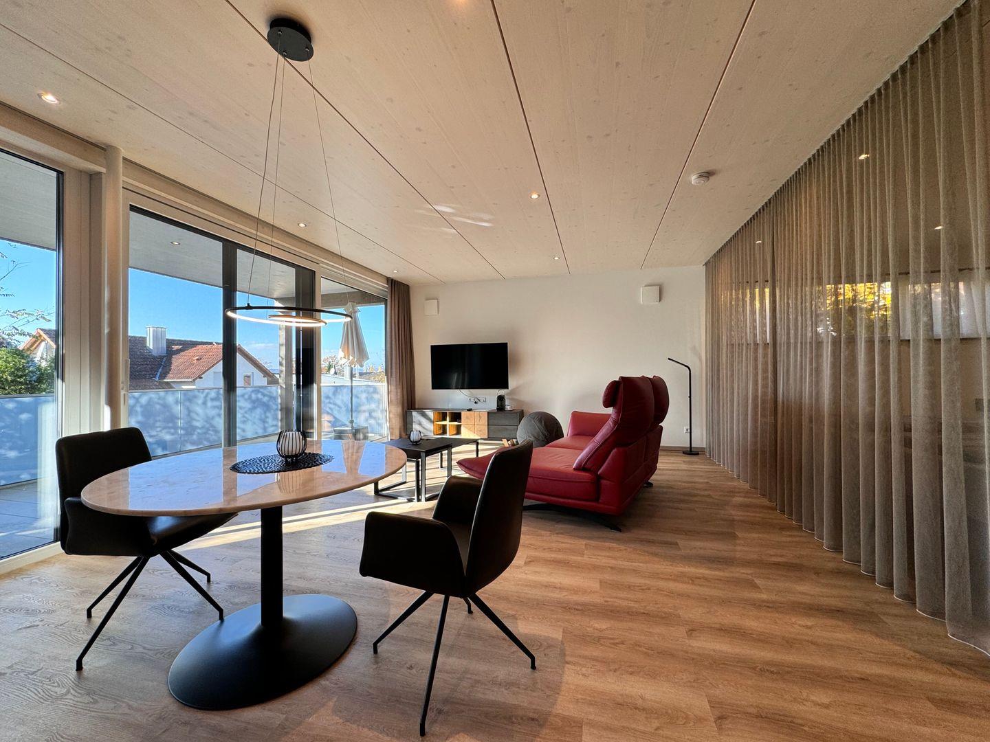 Das offene 1-Zimmer-Appartement überzeugt durch geradliniges schlichtes Design. Ausgesuchte Möbel und Textilien sorgen für eine harmonische Atmosphäre zum Wohlfühlen. Die Ausstattung lässt keine Wünsche offen. Unmittelbar in der Nähe verläuft der Bodensee-Radrund- sowie Wanderweg. Nach einem erlebnisreichen Tag haben Sie die Wahl zwischen einem Picknick zum Sonnenuntergang am traumhaften Naturstrand (300 m) oder einem gemütlichen Abend auf Ihrer großzügigen Terrasse/Balkon. Ihr PKW und E-Bike parkt überdacht im Carport.