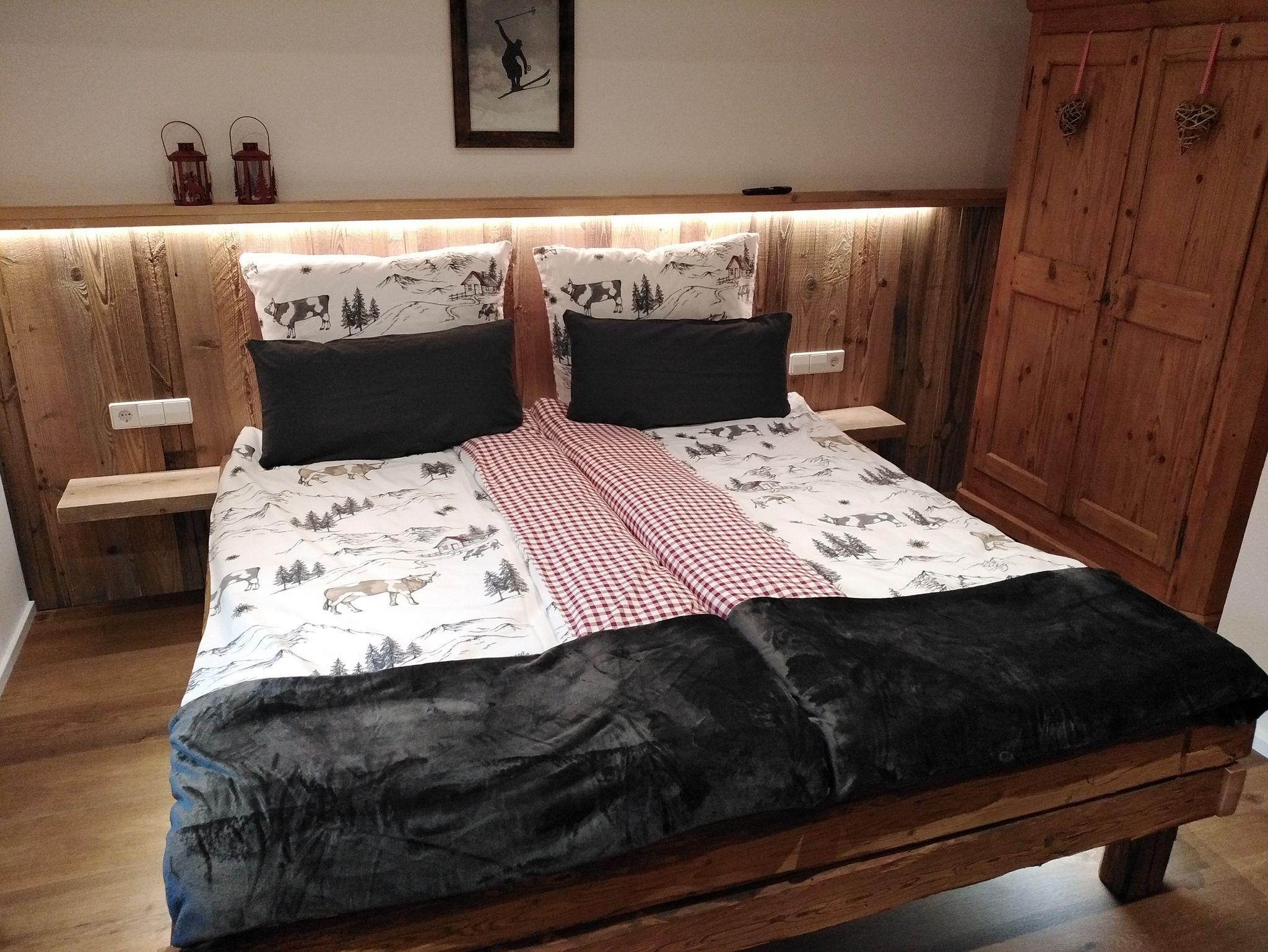 Unser Haus, BJ 1934, wurde 2024 komplett renoviert. Dabei wurden viele originale Bestandteile des Hauses, wie z.B. die Vollholztüren, restauriert und wiederverwendet. Mit viel Altholz und kleinen liebevollen Details entstand ein einzigartiges Wohnambiente, das in vielen Bereichen an eine Alm erinnert. Hierbei kommt jedoch der gewohnte Komfort nicht zu kurz.