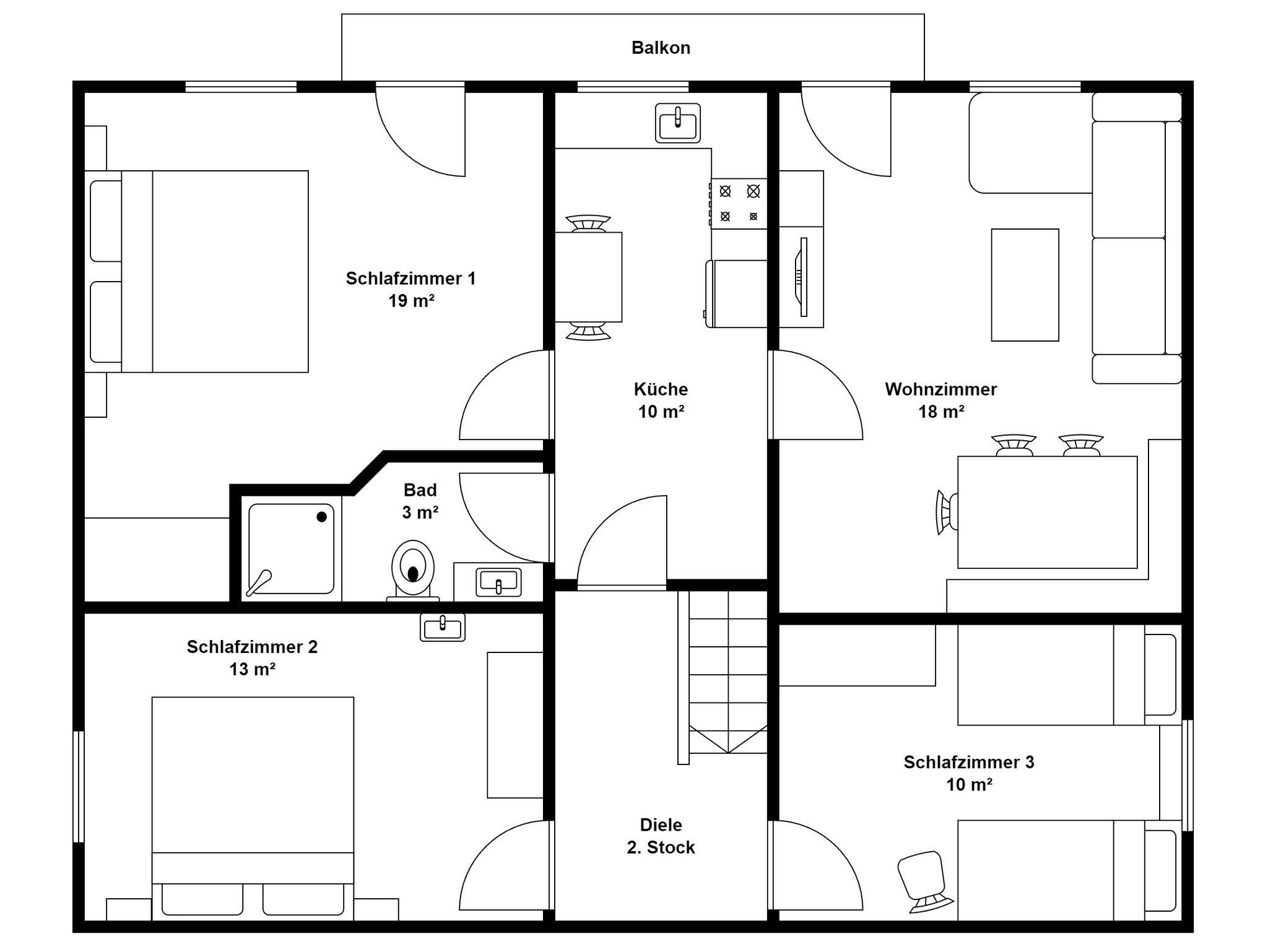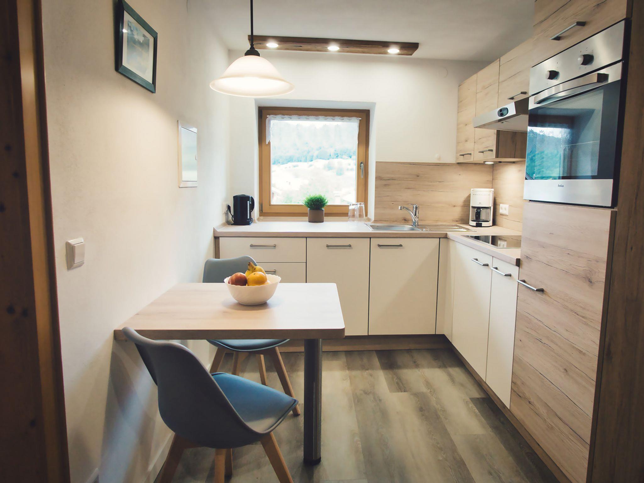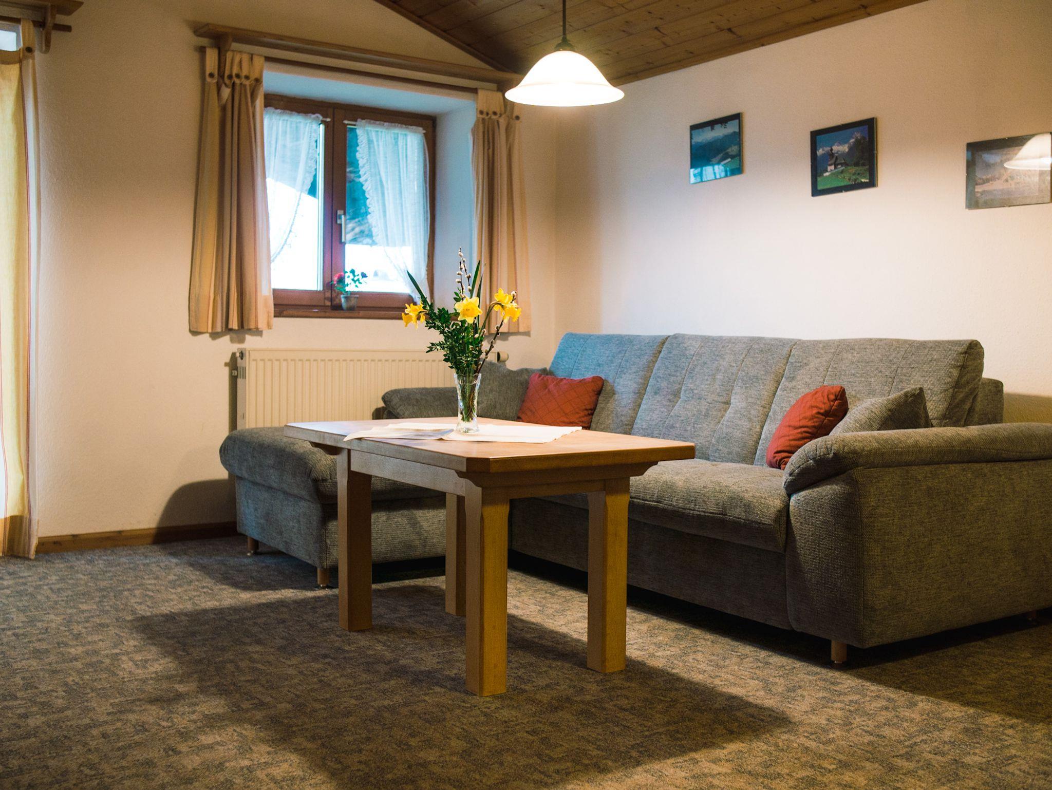 Die Wohnung befindet sich im 2. Stock und bietet Platz für 6 Personen. Sie besteht aus einem Wohnzimmer mit Couchgarnitur, Kabel-TV, Sitzecke, einer separaten, komplett eingerichteten Küche mit Geschirrspüler, 4 Platten E-Herd und Backofen-Kombigerät und Esstisch. Ein Schlafzimmer mit Doppelbett und Waschbecken, ein Schlafzimmer mit Doppelbett (und genug Platz für ein Babybett), ein Schlafzimmer mit Einzelbetten. Sowie einem Bad mit Dusche und WC (zusätzliche sep. Toilette im 1. Stock). Vom Balkon können Sie den Sonnenuntergang und den Blick auf die umliegenden Berge genießen. Bettwäsche und Handtücher werden gestellt.