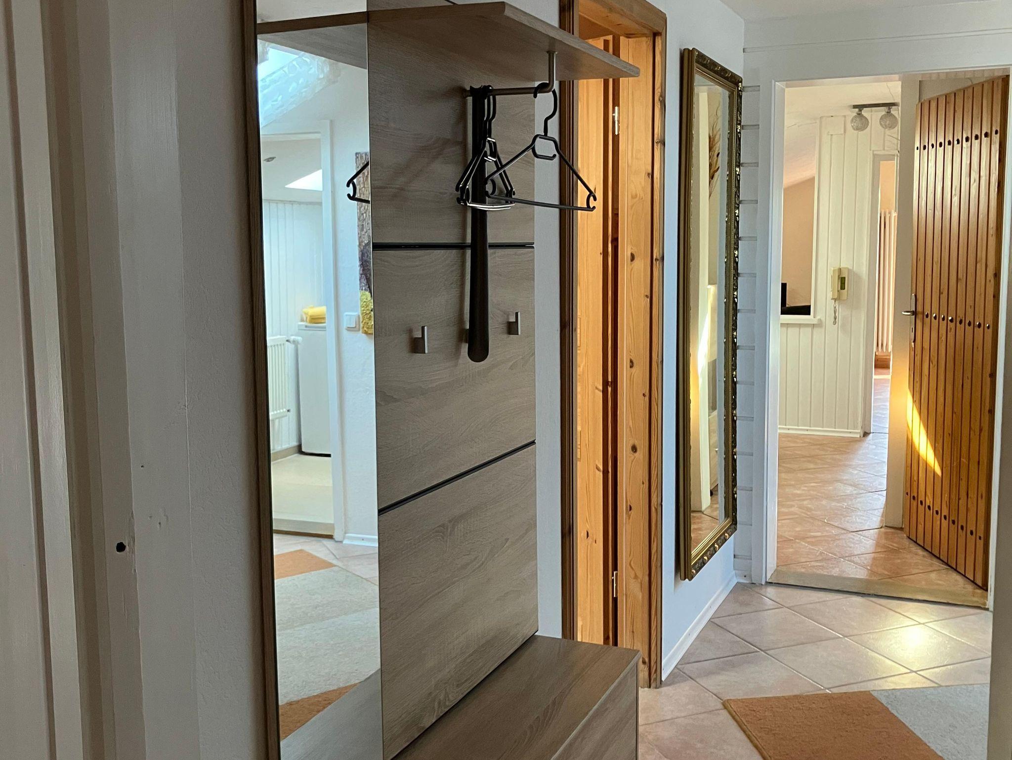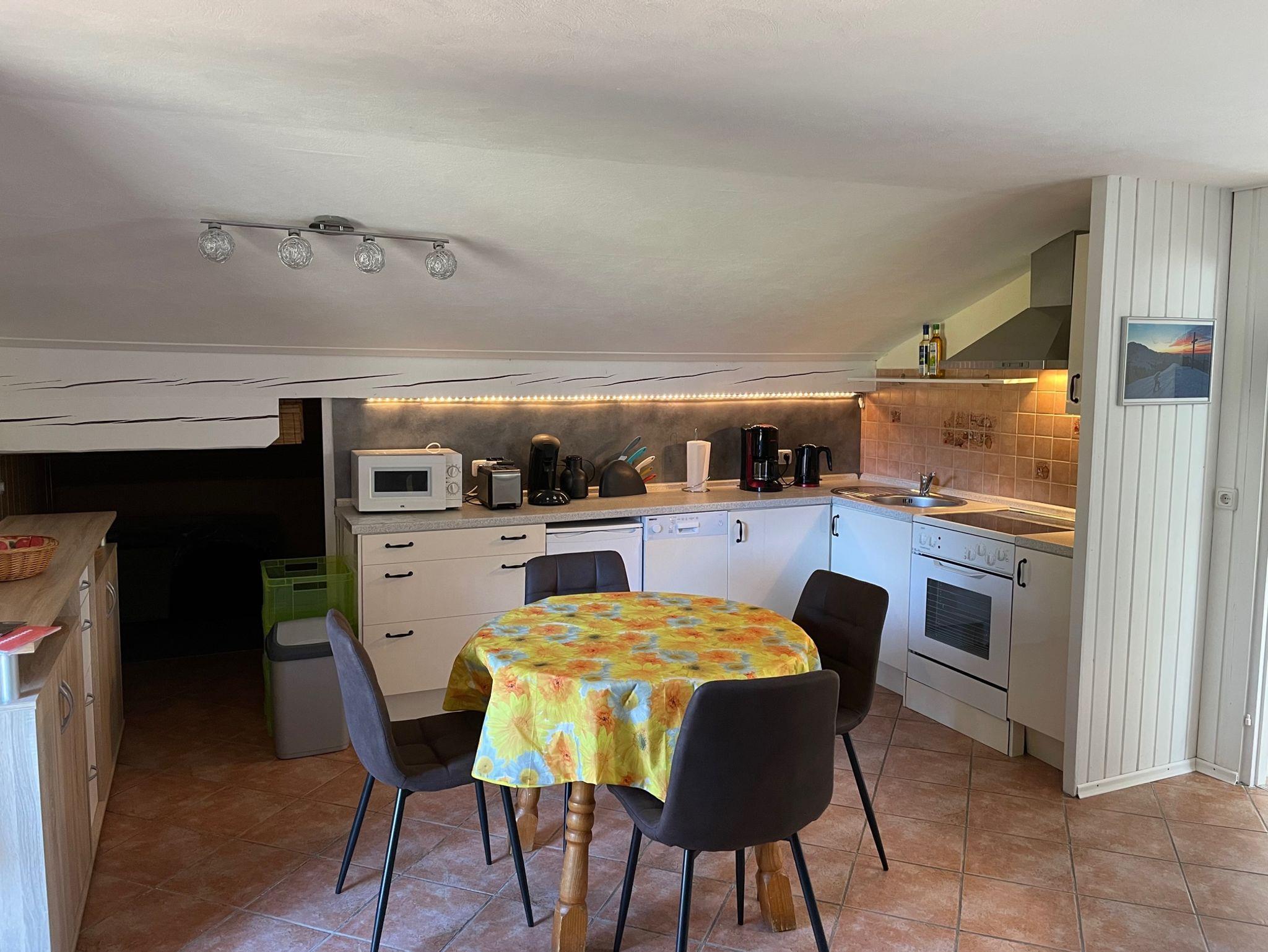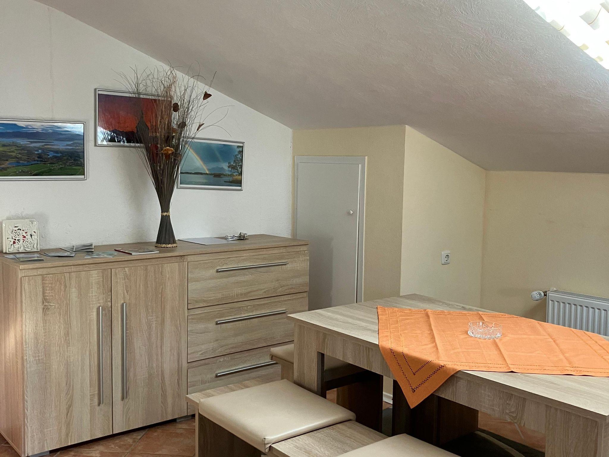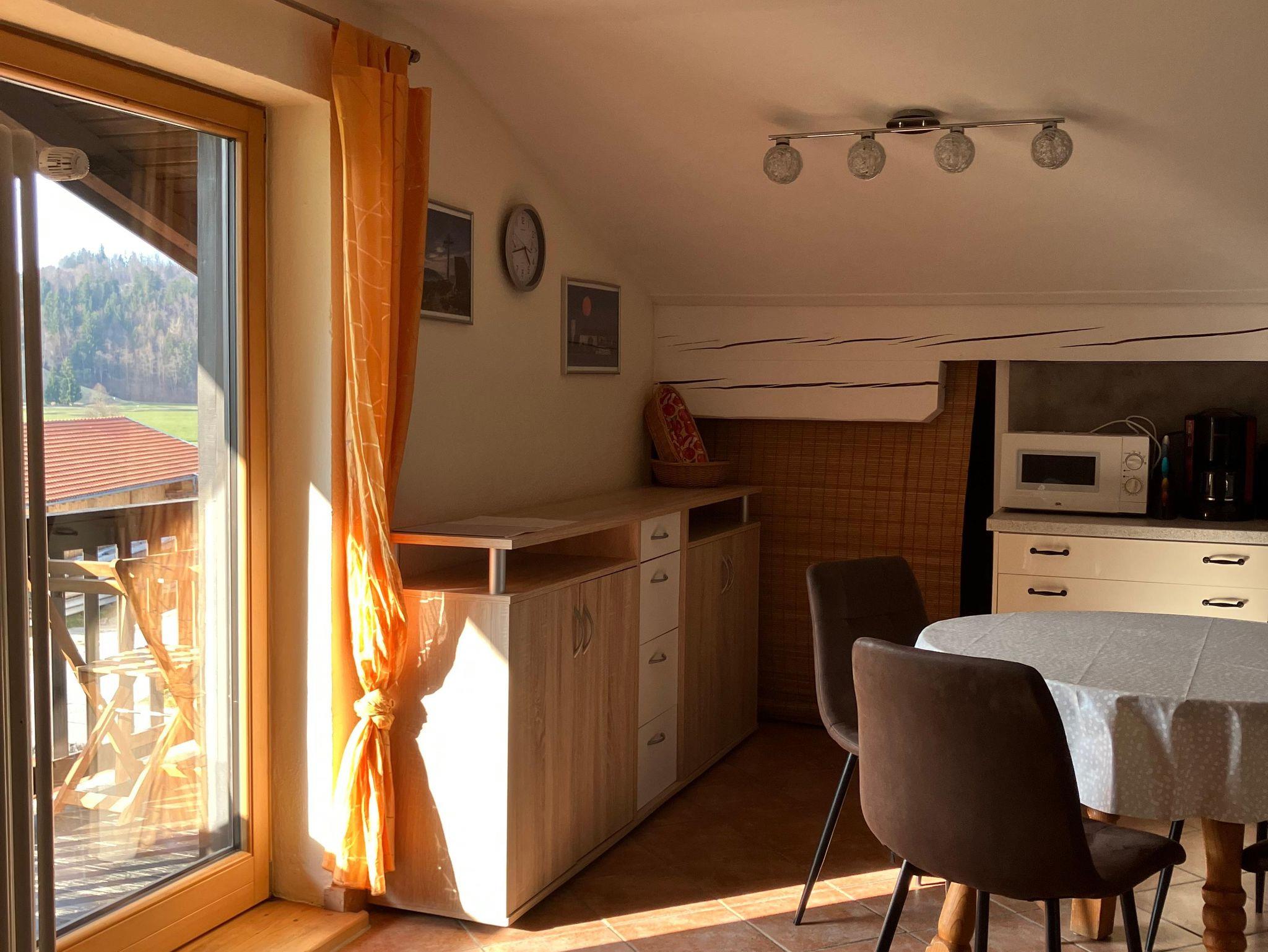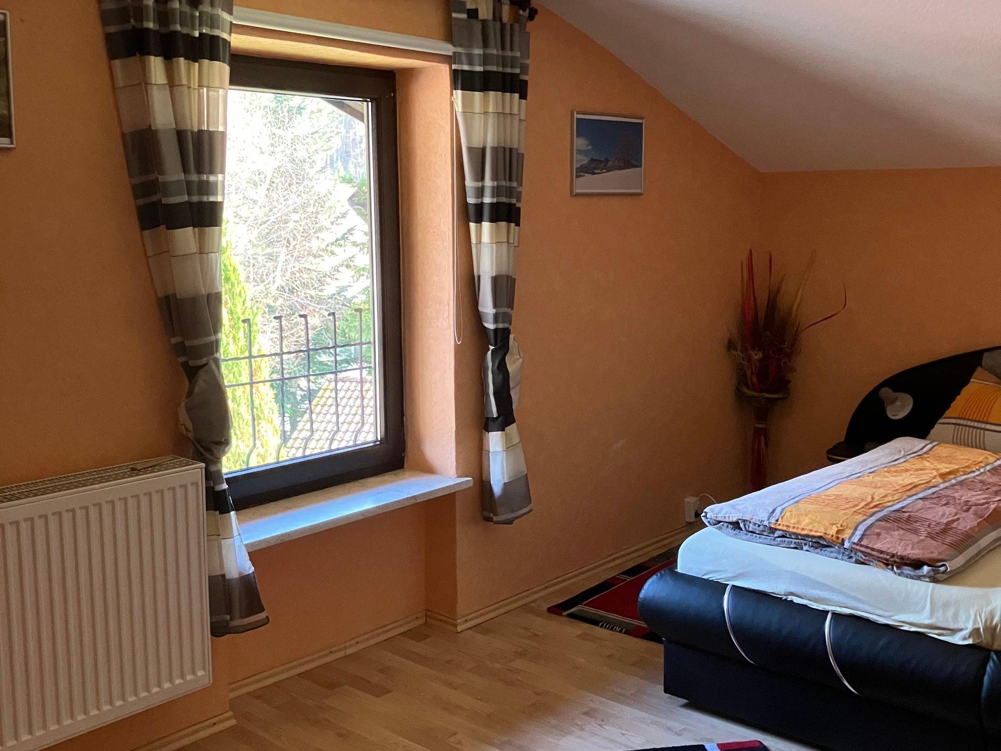Geräumiges, gemütliches und ruhiges Domizil (80 m²) im Dachgeschoss mit Blick auf die Berge, Almen und unverbaute Natur. Beginnen Sie im Sommer den Tag mit einem tollen Frühstück auf dem Balkon. In der Sauna können Sie sich nach einem sportlichen Tag wunderbar erholen. Die Wohnung ist ideal für Erwachsene, aber auch für Familien mit zwei Kindern geeignet. Im ausgebauten Dachgeschoss können kleine Kinder ungestört spielen. Das Haus liegt ruhig und ist ein idealer Ausgangspunkt für sportliche Aktivitäten – sowohl im Sommer als auch im Winter. Fahrräder und Skier können sicher untergestellt werden. Ein Parkplatz steht Ihnen kostenlos direkt am Haus zur Verfügung. Im Sommer lädt ein kleiner Gartenanteil mit Grillmöglichkeit zum Verweilen ein. In unmittelbarer Nähe gibt es einen schönen Spielplatz für die Kleinen. Einen wunderbaren Badesee mit Restaurant erreichen Sie nach ca. 5 km über einen idyllischen Wanderweg. Im Winter sehen Sie die Loipen direkt vom Balkon aus. Skilifte erreichen Sie nach etwa 10 km. Auch mit öffentlichen Verkehrsmitteln ist die Anreise problemlos: Nach etwa 400 m befindet sich Ihr Domizil auf der linken Seite, erreichbar über einen gut ausgebauten Gehweg. In unserem kleinen Ort gibt es einen EDEKA-Markt. Dort erhalten Sie neben den üblichen Lebensmitteln auch frische Backwaren, Käse, Wurst sowie Fleisch- und Grillwaren aus der Käserei und Metzgerei an der Frischetheke.