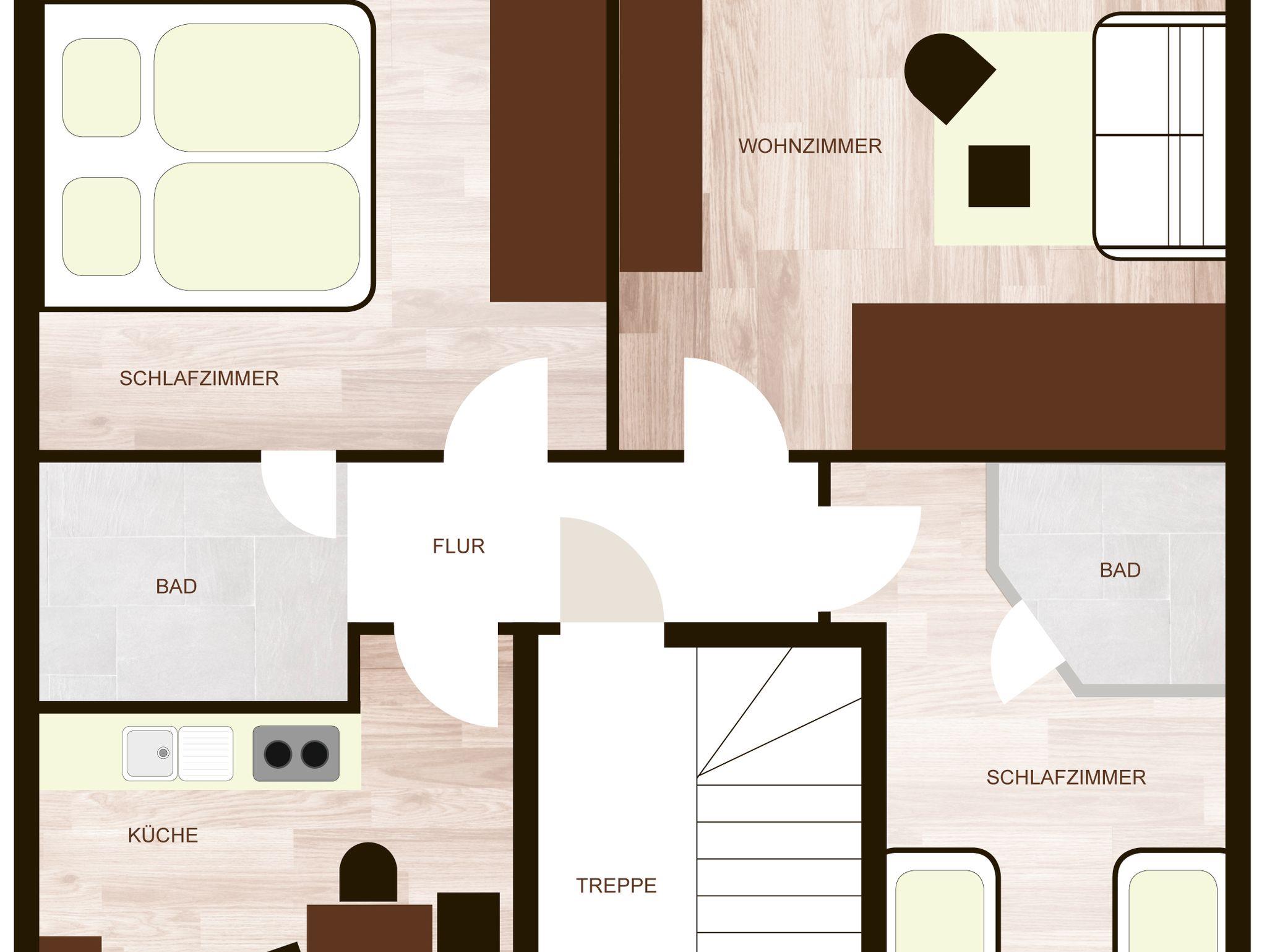 Unsere neue Ferienwohnung verfügt auf insgesamt 80 m² über 2 getrennte Schlafzimmer sowie 2 Bäder mit Duschen. Vom Wohnzimmer mit gemütlicher Couch gelangen Sie auf den großen Süd-Balkon, der Ihnen einen herrlichen Blick auf die Berge bietet. In der komplett ausgestatteten Küche befindet sich ein großer Esstisch für die ganze Familie.