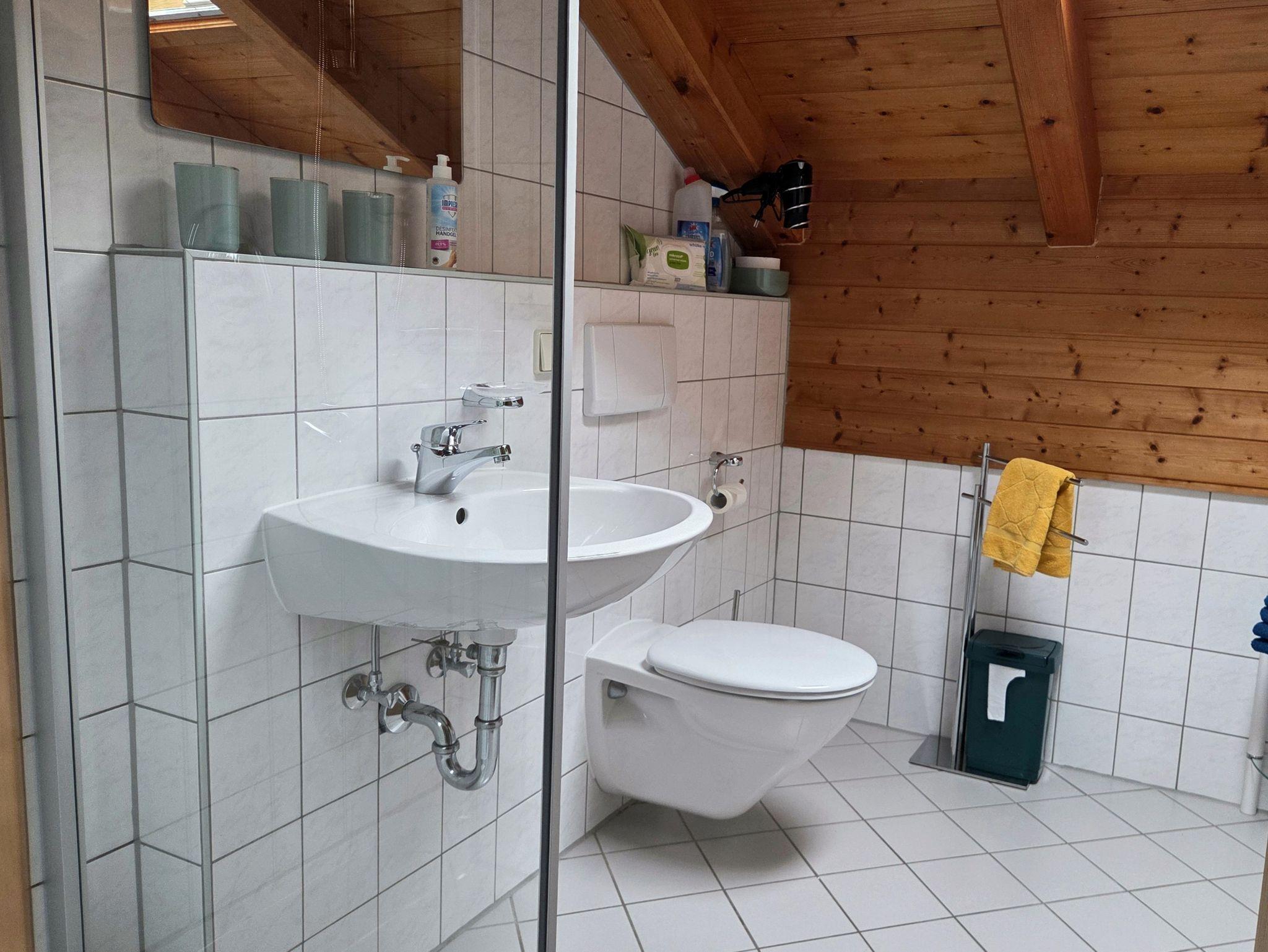 Dusche und WC mit Tageslicht, Haarfön und Toilettenartikel. Hauspantoffel. Abgeschlossener Abstellraum für Ski, Fahrräder, E-Bikes. Kostenloser Internet- Wlan. Zugang im gesamten Haus, Massageanwendungen mit Young Living Aroma Öle, Hausbesuche von Gabriele Scharnagl.