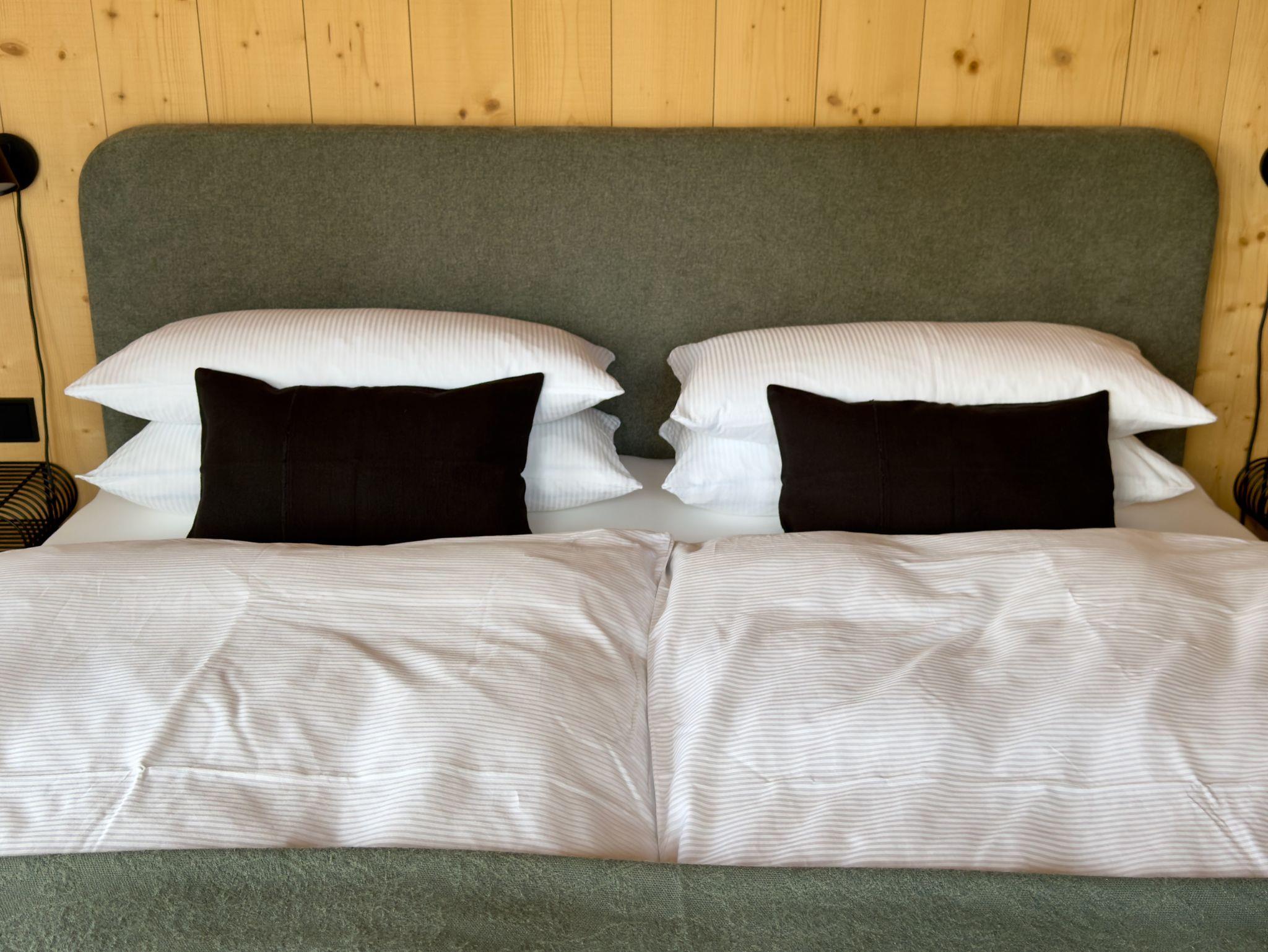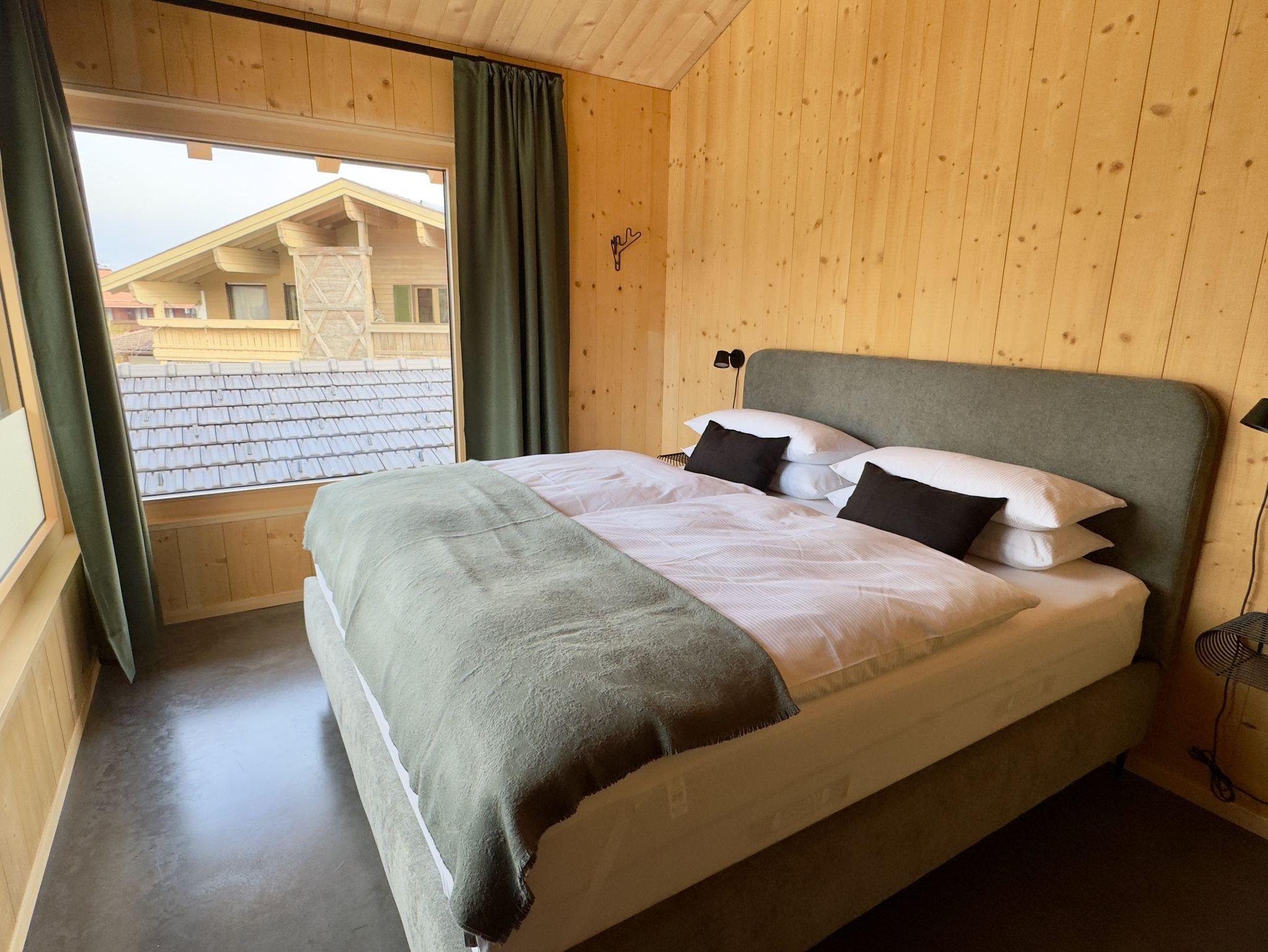 Die Wohnung bietet eine ruhige, helle Atmosphäre mit viel Holz und natürlichen Materialien. Zwei komfortable Schlafzimmer mit Doppelbetten sorgen für erholsamen Schlaf. Hochwertig ausgestattet und harmonisch in das nachhaltige Wohnkonzept des Hauses eingebunden.
