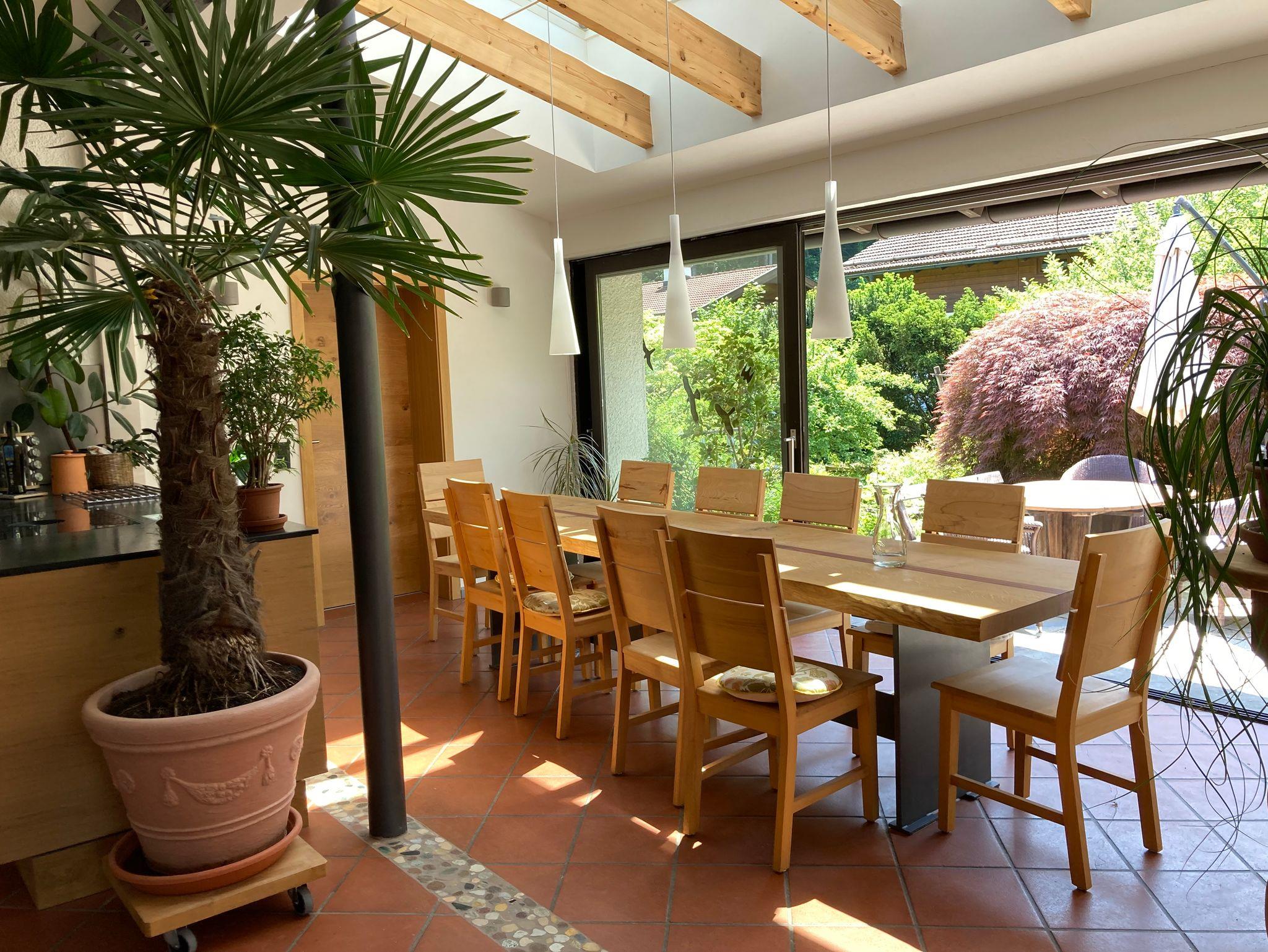 Sehr großzügig geschnittenes Haus von 1975, das zwischen 2021 und 2023 komplett saniert, modernisiert und technisch auf den neuesten Stand gebracht wurde. Das Haus wird von einem romantischen Garten mit Rasenfläche zum Spielen und Ausruhen eingerahmt. Es steht in einer sehr ruhigen Siedlung am Waldrand, am Fuße des Balsberg.