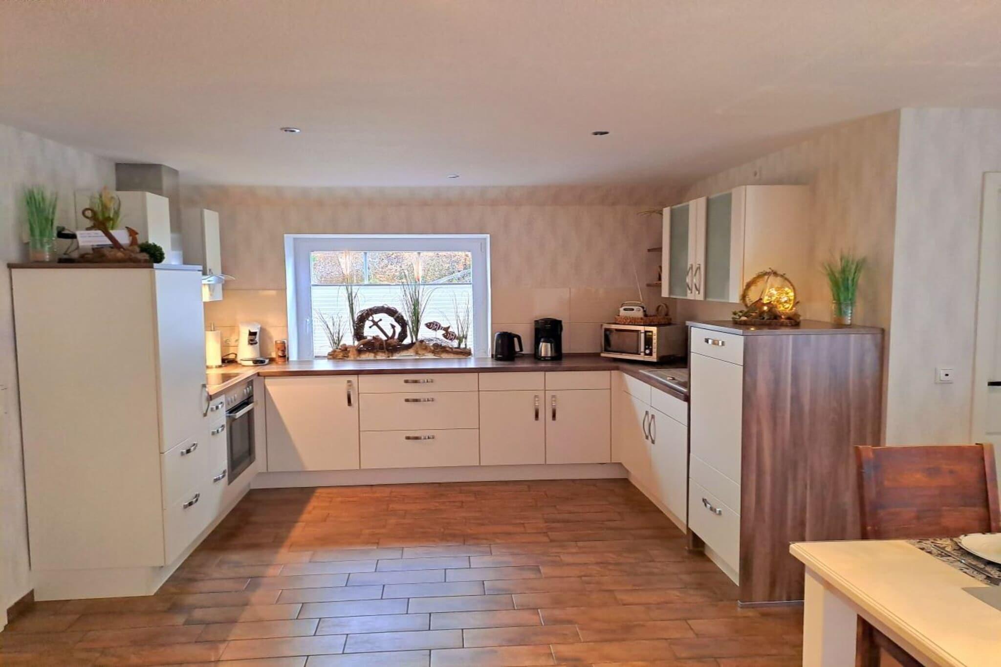 Genießen Sie ihren Urlaub in unserem liebevoll renovierten Landhaus Lüttje Nüst. Das Haus hat eine Wohnfläche von ca 120m² und ist für max. 4 Personen ausgelegt. Im unteren Bereich des Hauses, ausgestattet mit Fußbodenheizung, befindet sich neben der voll ausgestatteten Küche mit Kamin auch ein Wohnzimmer, ein Bad mit Dusche, ein WC, ein Wasch- und Heizungsraum mit Waschmaschine und zwei Abstellräume. Im Obergeschoss finden Sie ein Schlafzimmer mit Doppelbett und ein weiteres Schlafzimmer mit zwei Einzelbetten, sowie ein Bad mit WC. Der schöne Garten mit Pavillon, Gartenmöbel und Grillecke inklusive Grill lädt zum Relaxen oder zum ausgiebigen Spielen ein.