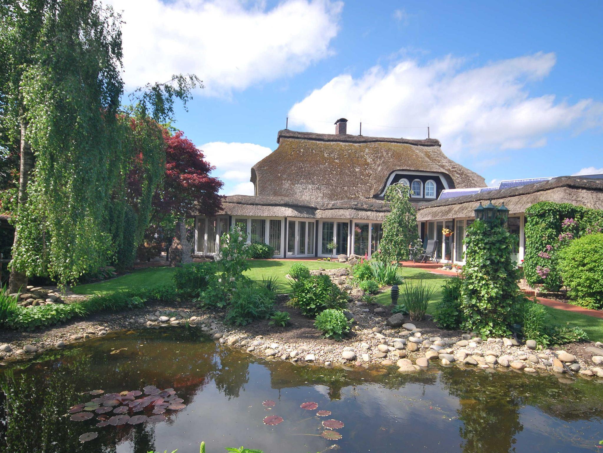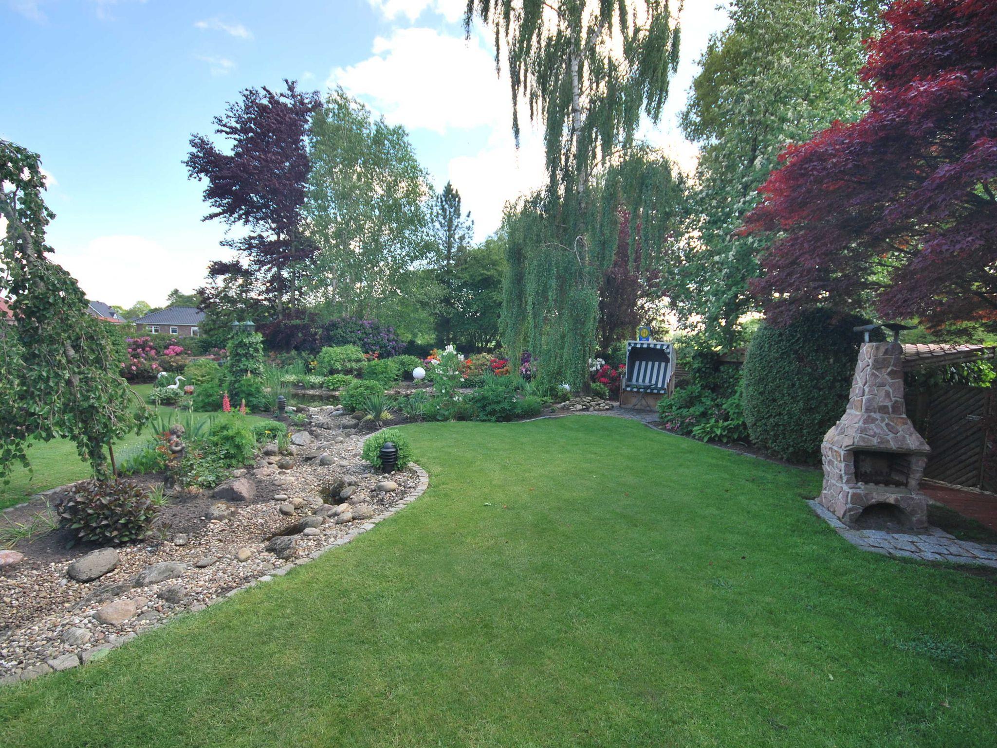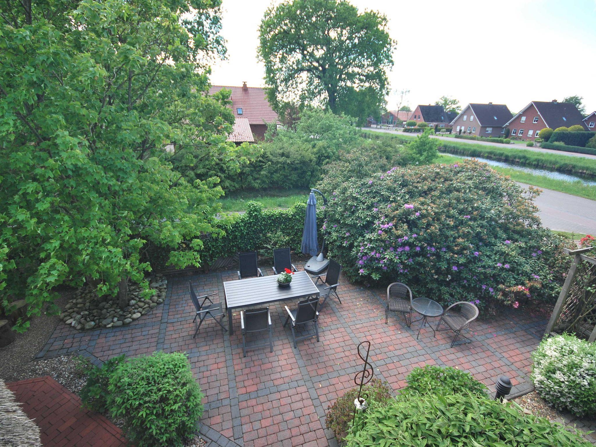 Im Garten finden Sie zur Mitbenutzung zwei Grillplätze,Terrassen und Sitznieschen.Eine idylische kleine Teichanlage mit Bachlauf runden das Gesamtbild ab. Auch die Kinder kommen hier nicht zu kurz: Ihnen steht eine Kinderrutsche, eine Schaukel, Tischtennis, Tischfußball und vieles weitere zur Verfügung. Auch für Angler ist unsere Ferienwohnung bestens geeignet. Angelrouten können gerne kostenlos bereit gestellt werden. Ideal an der Deutschen Fehnroute gelegen und Radfahrer können sich hier richtig austoben.