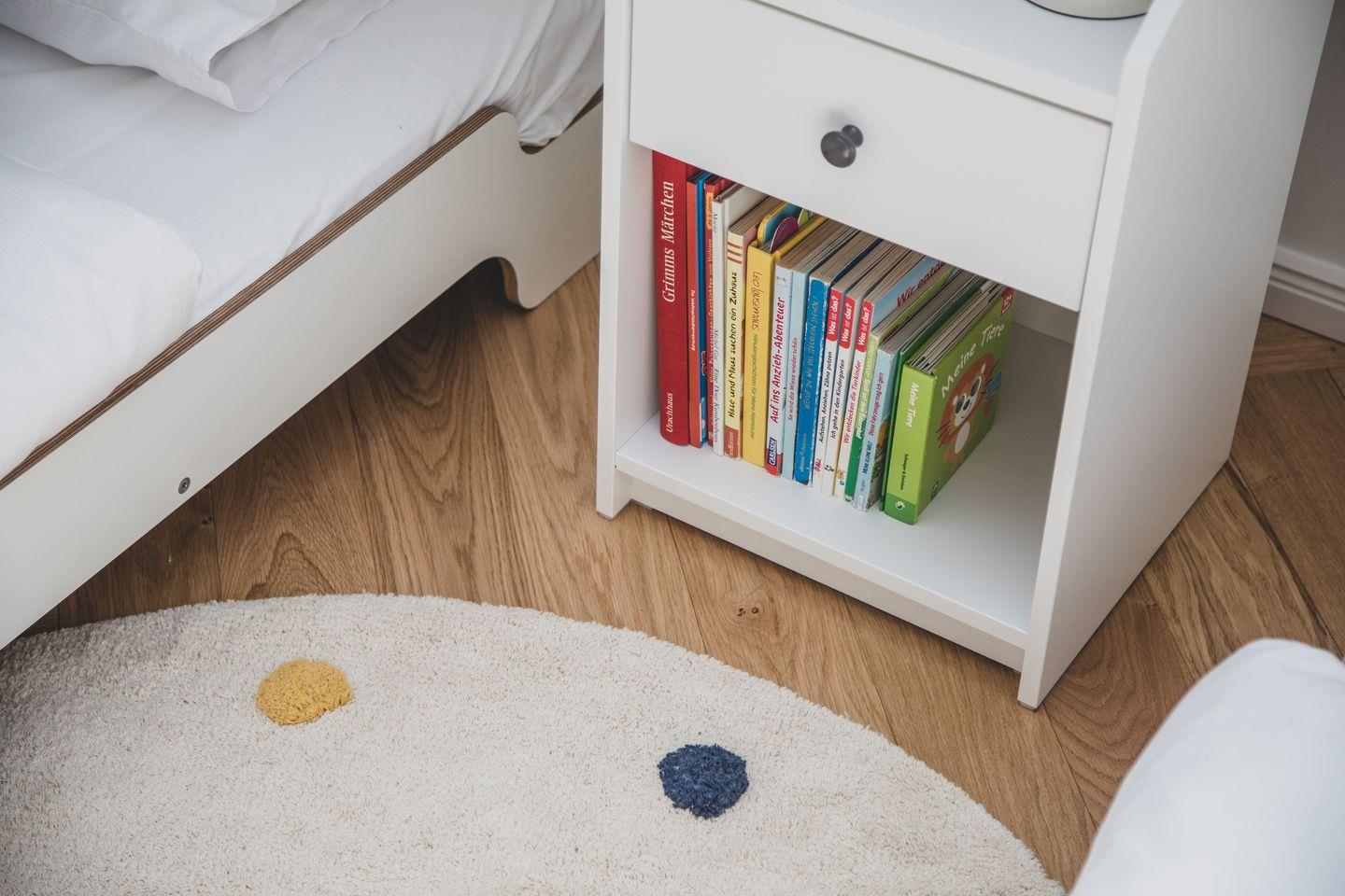 Nach einem erlebnisreichen Tag erwartet Sie im Badezimmer eine bodengleiche Dusche, die mit warmem Wasser versorgt wird. Hier finden Sie auch einen Haartrockner sowie weitere Annehmlichkeiten wie Handtücher und Badausstattung. Für Eltern mit kleinen Kindern ist die Wohnung bestens ausgestattet: Ein Babybett, ein Hochstuhl und Spielzeug sind vorhanden, um den Kleinen einen sorgenfreien Aufenthalt zu ermöglichen.