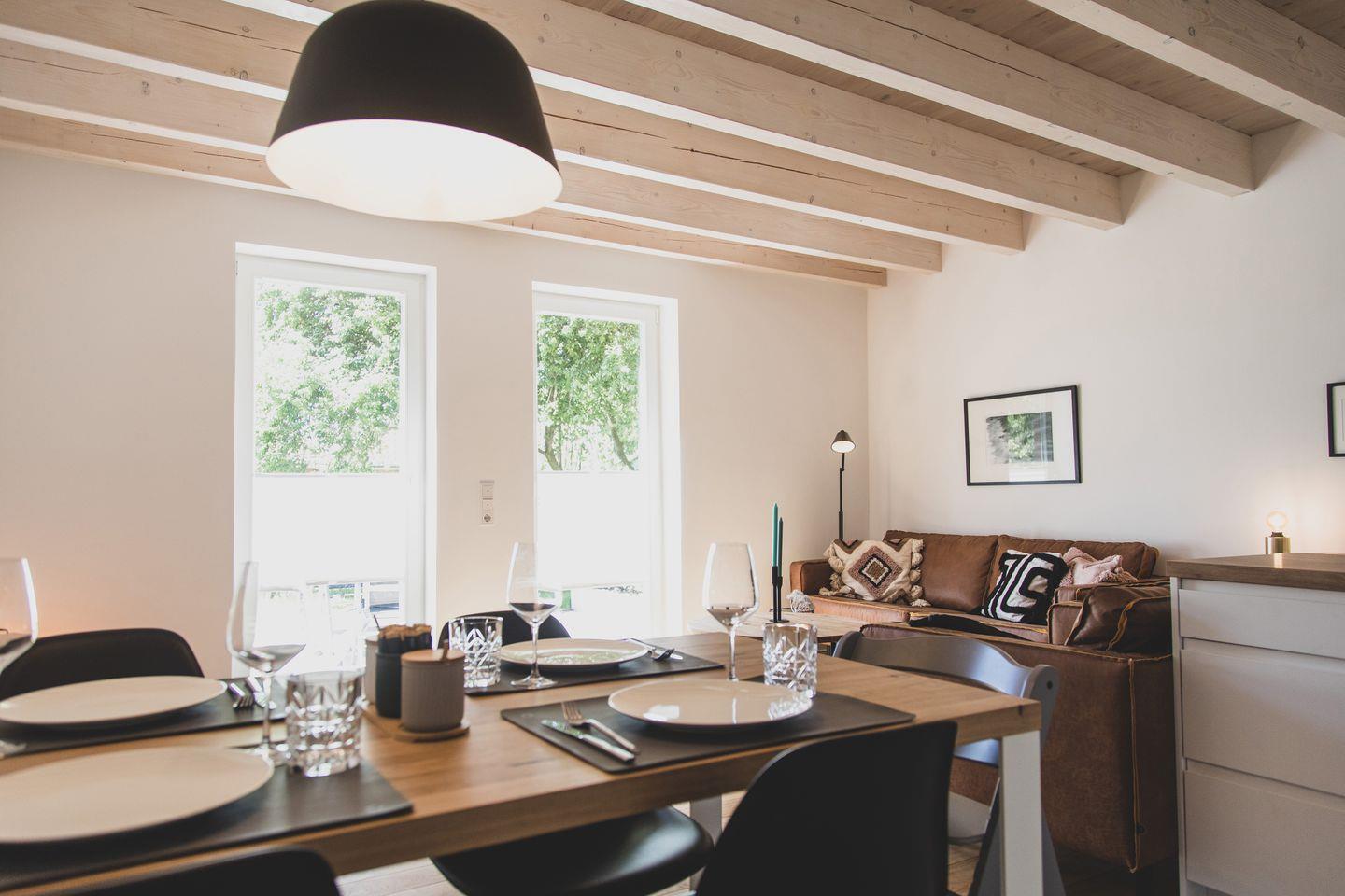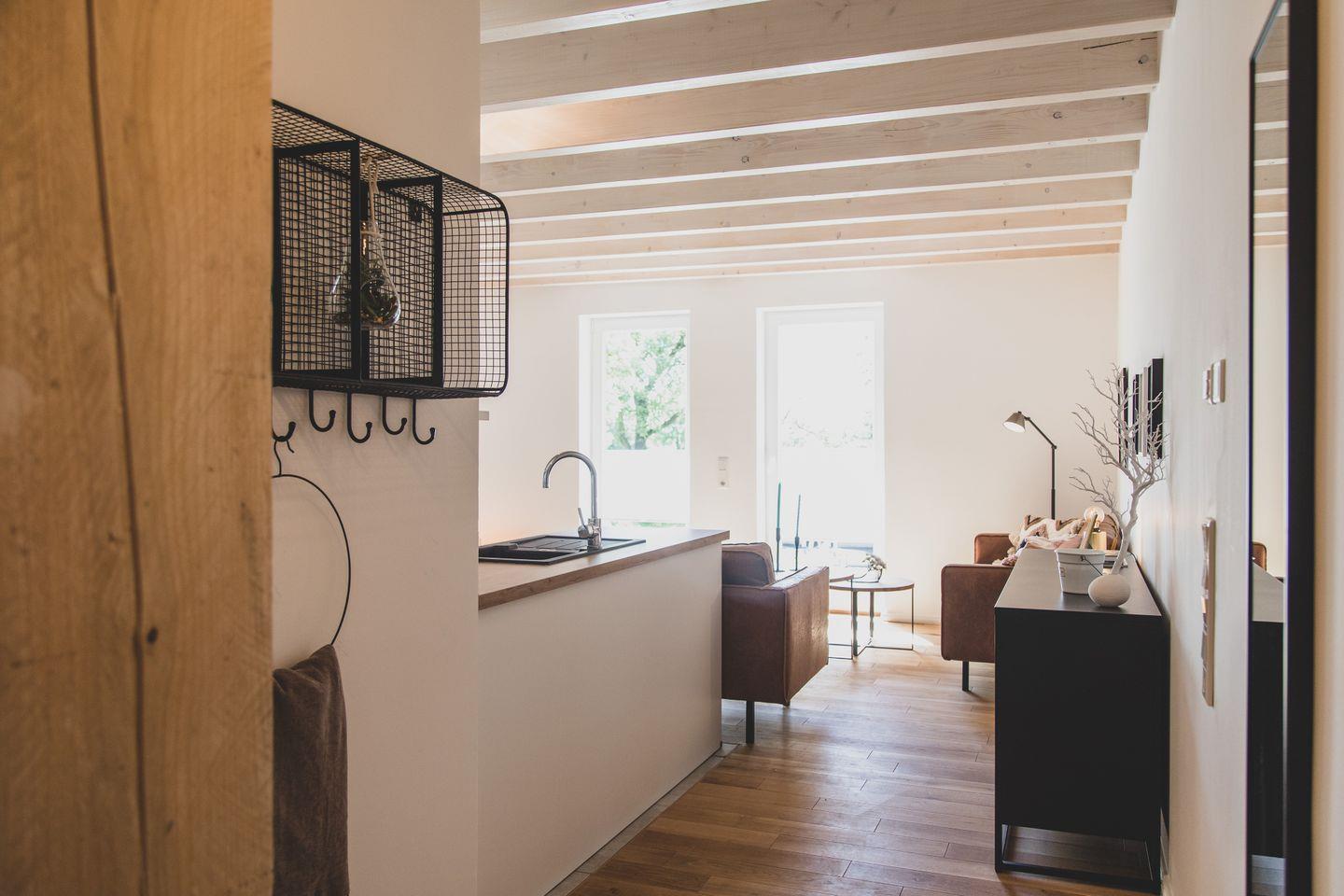 Die Ferienwohnung verfügt über zwei einladende Schlafzimmer mit Parkettboden, die Gemütlichkeit und einen erholsamen Schlaf versprechen. Das offene Wohnzimmer begeistert mit einer gemütlichen Sofaecke und einem Essbereich, der perfekte Ort für gemeinsame Mahlzeiten. Eine voll ausgestattete Küche, die mit modernen Geräten wie Induktionsherd, Backofen, Kühlschrank und Nespresso-Maschine ausgestattet ist, lässt keine Wünsche offen und ermöglicht es Ihnen, Ihre Lieblingsgerichte zuzubereiten. Die große Terrasse lädt dazu ein, die frische Luft und die Aussicht auf den Garten und die umliegende Natur zu genießen. Hier können Sie entspannen, während die Kinder im Garten spielen.