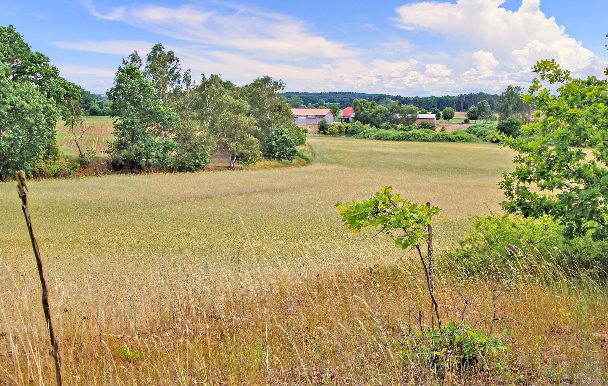 In idyllischer Ruhe und familiärer Atmosphäre, abseits des Stadtlärmes, auf einem British Longhorn Hof, befinden sich auf dem ca. 300 qm großen, umzäunten Grundstück in der Doppelhaushälfte eines 2017 erbauten Wohnhauses zwei Ferienwohnungen für 2 bzw. 4 Personen. Sie werden nachhaltig durch großflächige Solaranlagen auf Stall und Scheune versorgt.Hier finden die Gäste noch echtes Landleben zum Anfassen neben einer urigen Mutterkuhherde werden Hühner, Schafe und Ziegen alter Rassen in extensiver Weidewirtschaft gehalten. In der offenen Wald- und Wiesenlandschaft vor der Terrasse bzw. dem Balkon fühlen sich u.a. Gänse und Kraniche zu Hause. Die ruhige Lage der Wohnungen, etwas abseits des Dorfes ist idealer Ausgangspunkt für ausgedehnte Fahrradtouren. Die Gegend bietet darüber hinaus unzählige Wanderwege, Badestellen und andere Ausflugsmöglichkeiten für Erwachsene und Kinder.