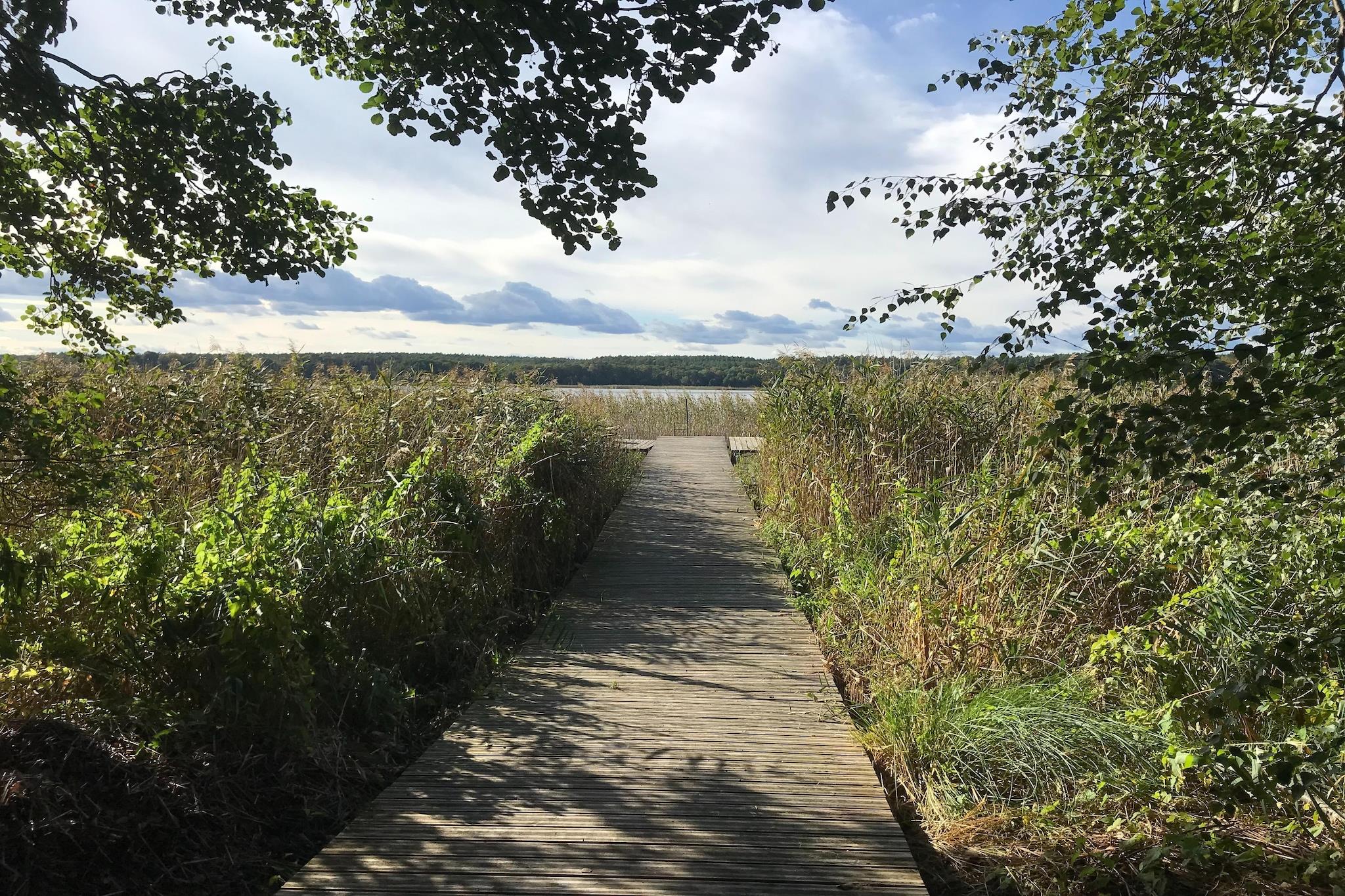 Sie mögen die Natur, die Ruhe und Unabhängigkeit? Dann ist dieses Ferienhaus mit Sauna und Kaminofen im skandinavischen Stil das Richtige für Sie. Im kleinen, autofreien und familienfreundlichen Feriendorf in idyllischer Lage, direkt am Useriner See können Sie Alltag und Stress schnell vergessen. Sie wohnen am Rande des Müritz-Nationalparks, hier können Sie endlos wandern, radfahren oder paddeln (Kanu-Verleih in der Nähe). Sie erreichen den See nach ca. 130m, ein einsamer Badesteg gehört zum Feriendorf. Eine kindergeeignete Badestelle mit Sandstrand, Schaukel und Wasserrutsche ist ebenso nur ca. 200 m entfernt. Das gemütliche Haus bietet durch drei Schlafzimmer Rückzugsmöglichkeiten für bis zu sechs Personen auf zwei Etagen und wurde 2022 renoviert. Eine gut ausgestattete Küchenzeile mit Spülmaschine, die möblierte Terrasse, Duschbad mit WC und Sauna, Fernseher und WLAN sorgen für einen angenehmen Aufenthalt. Die offene Küche, der Esstisch und das Wohnzimmer mit Kaminofen laden zu gemeinsamen Abenden mit Essen, Spielen oder Erzählen ein. Eine teilüberdachte Terrasse mit Grill schließt sich an das Wohnzimmer an. Für alle Fragen vor Ort steht Ihnen unser freundlicher Verwalter mit Rat und Tat gerne zur Verfügung. Hunde sind in der Anlage nicht erlaubt. Zum Feriendorf gehört auch ein Spielplatz, sowie ein nahegelegener Beach-Volleyball - und Basketballplatz, inklusive einer Tischtennisplatte. Im Dorf Userin gibt es ein kleines Lebensmittelgeschäft für den täglichen Bedarf. Sehenswerte Orte wie Waren, Röbel oder Rheinsberg sind schöne Ziele in der Umgebung, Neustrelitz ist nur 7km entfernt und als alte Residenzstadt einen Besuch wert. Hier finden Sie auch verschiedene Restaurants, Kinos und andere kulturelle Möglichkeiten. Es gibt einen Tierpark und ein Freilichtmuseum (Slawendorf), beides ist auch für Kinder besonders geeignet. Highlights inklusive: Wasser WLAN Aktivitäten in der Nähe: Boot- und Kanuverleih am Useriner See, eine Anlegestelle befindet sich in unmittelbarer Nähe zum Feriendorf. Boote und Fahrräder werden Ihnen an der Rezeption vermittelt. Der Müritz-Nationalpark beginnt direkt am Ferienpark und Sie können die unberührte Natur zu Fuß, mit dem Rad oder mit dem Kanu endlos erkunden.