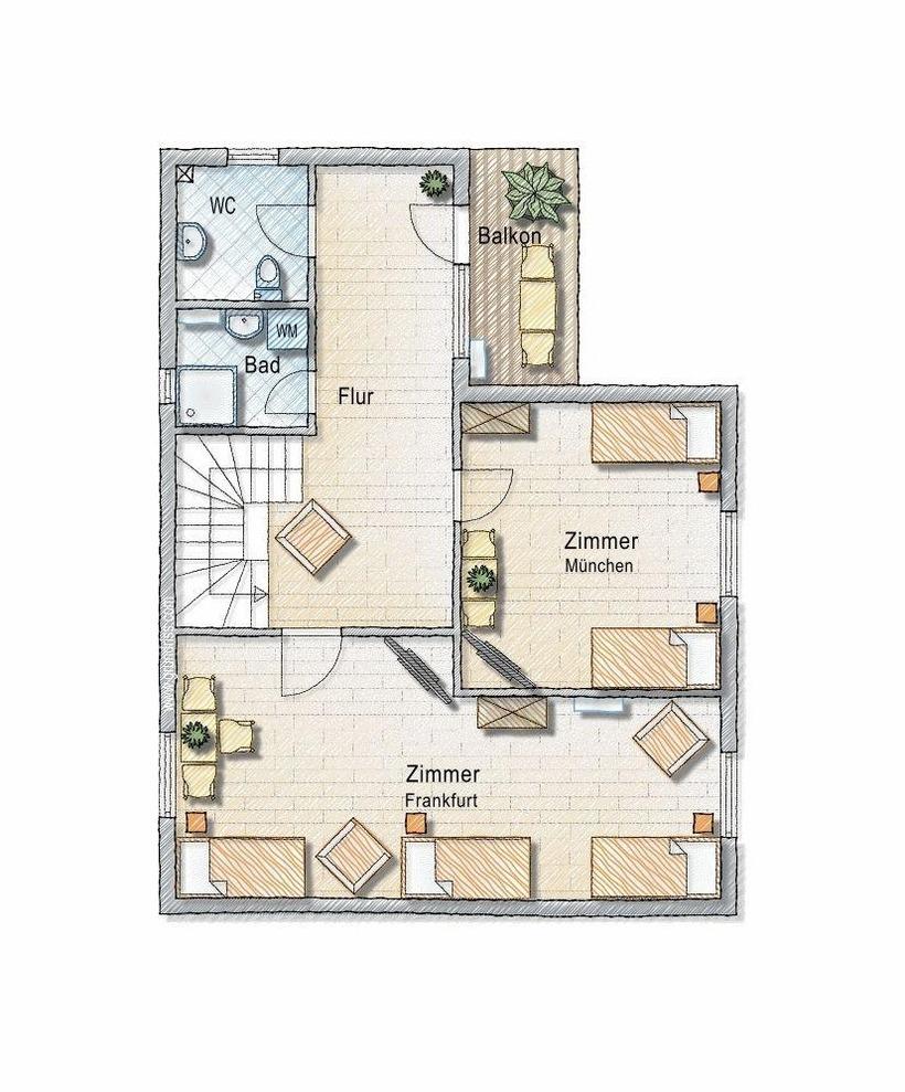 3 Schlaf/Wohnzimmer, 1 Küche, 2 Tageslichtbäder, 2 G-WCs,