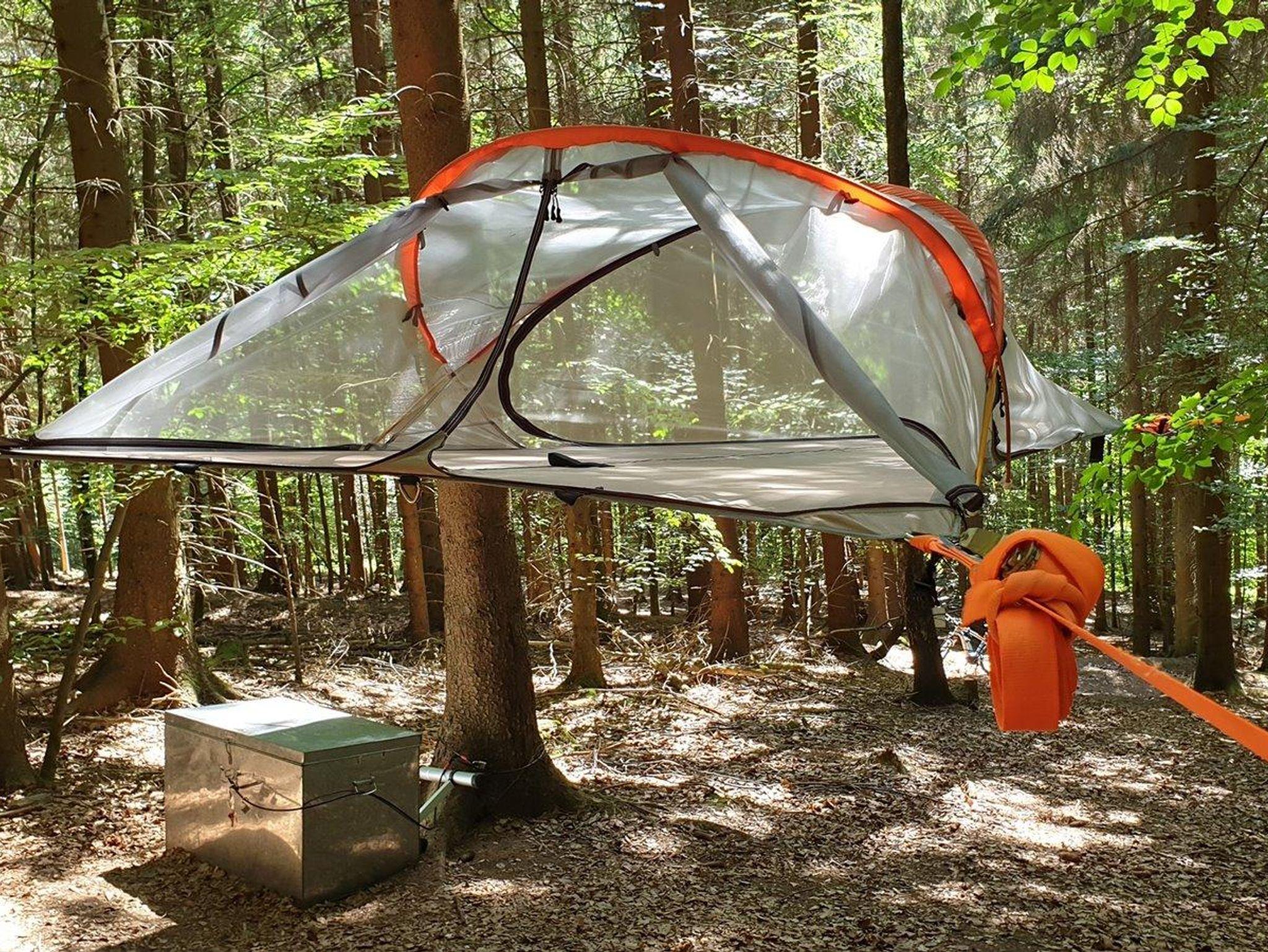 Mehr Natur geht nicht. Die Zelte sind jeweils zwischen drei Bäume gespannt und schweben in ca. 1,5 m Höhe über dem Waldboden. Beim Baumzelt Fichte stehen hauptsächlich Fichten in der Nähe. Für die Übernachtung im Baumzelt ist ein Schlafsack sowie eine Isomatte erforderlich!