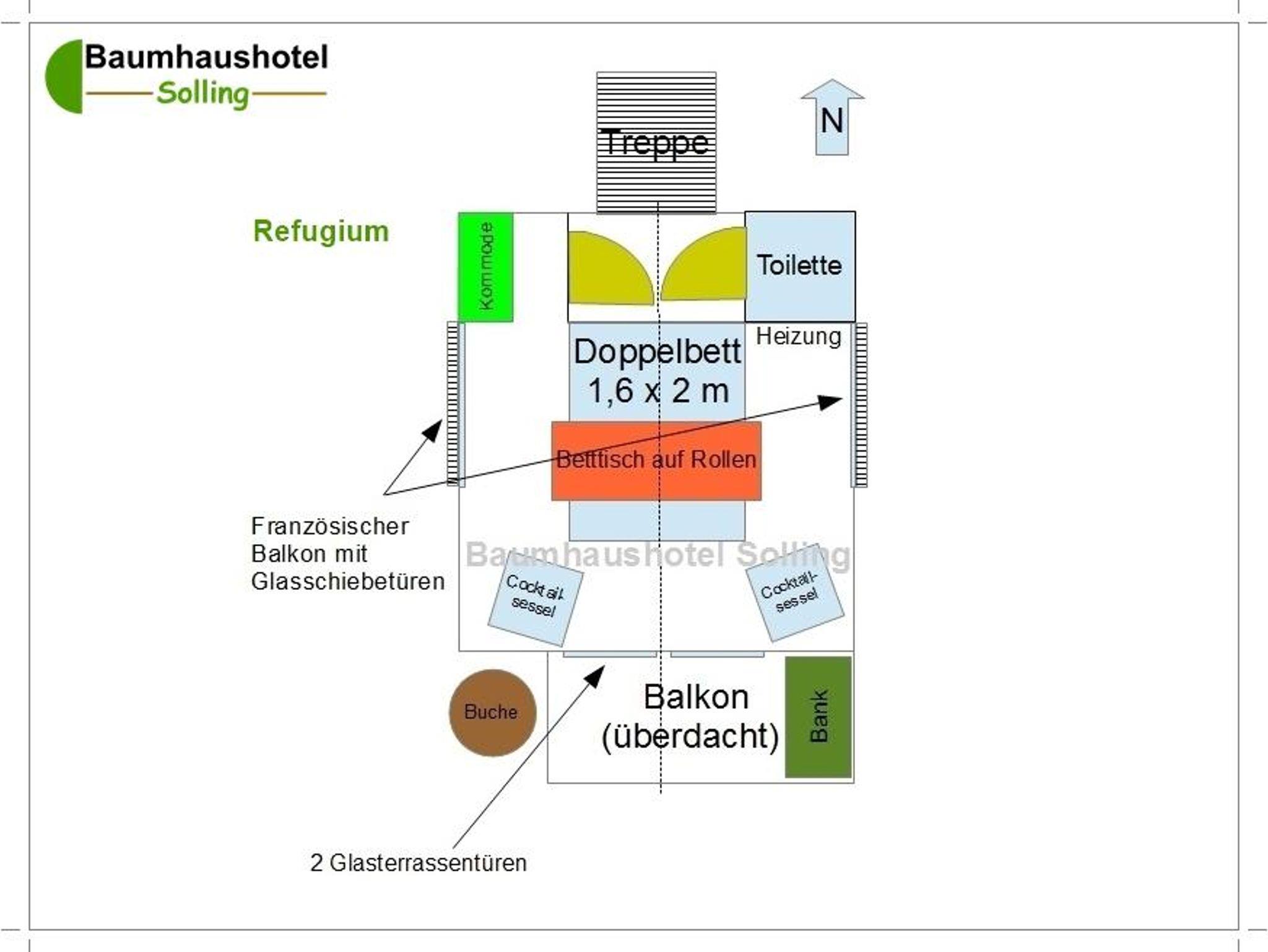 Baumhaushotel Solling, Baumhaus Refugium, Wohn-/Schlafraum