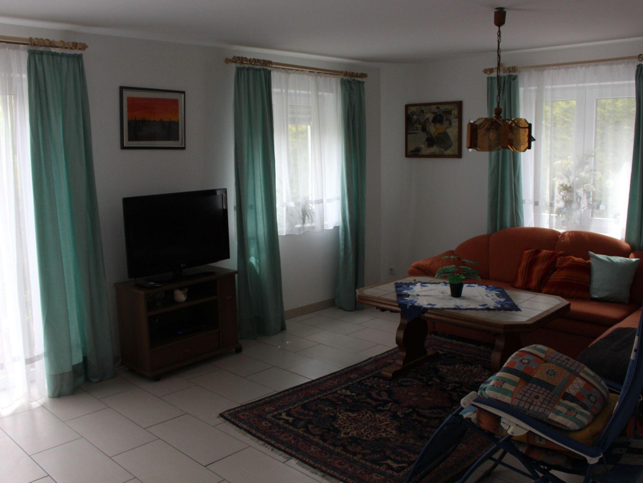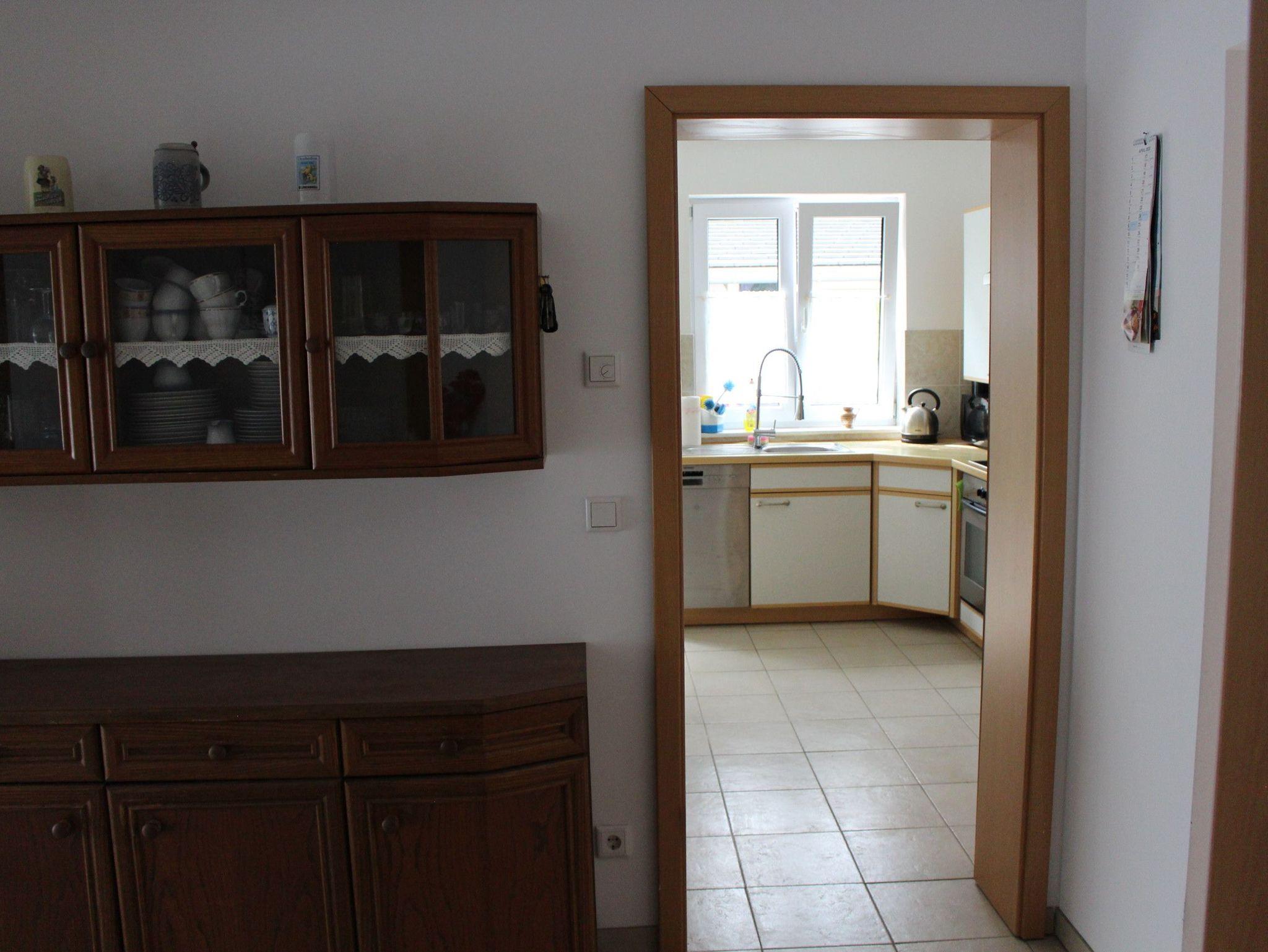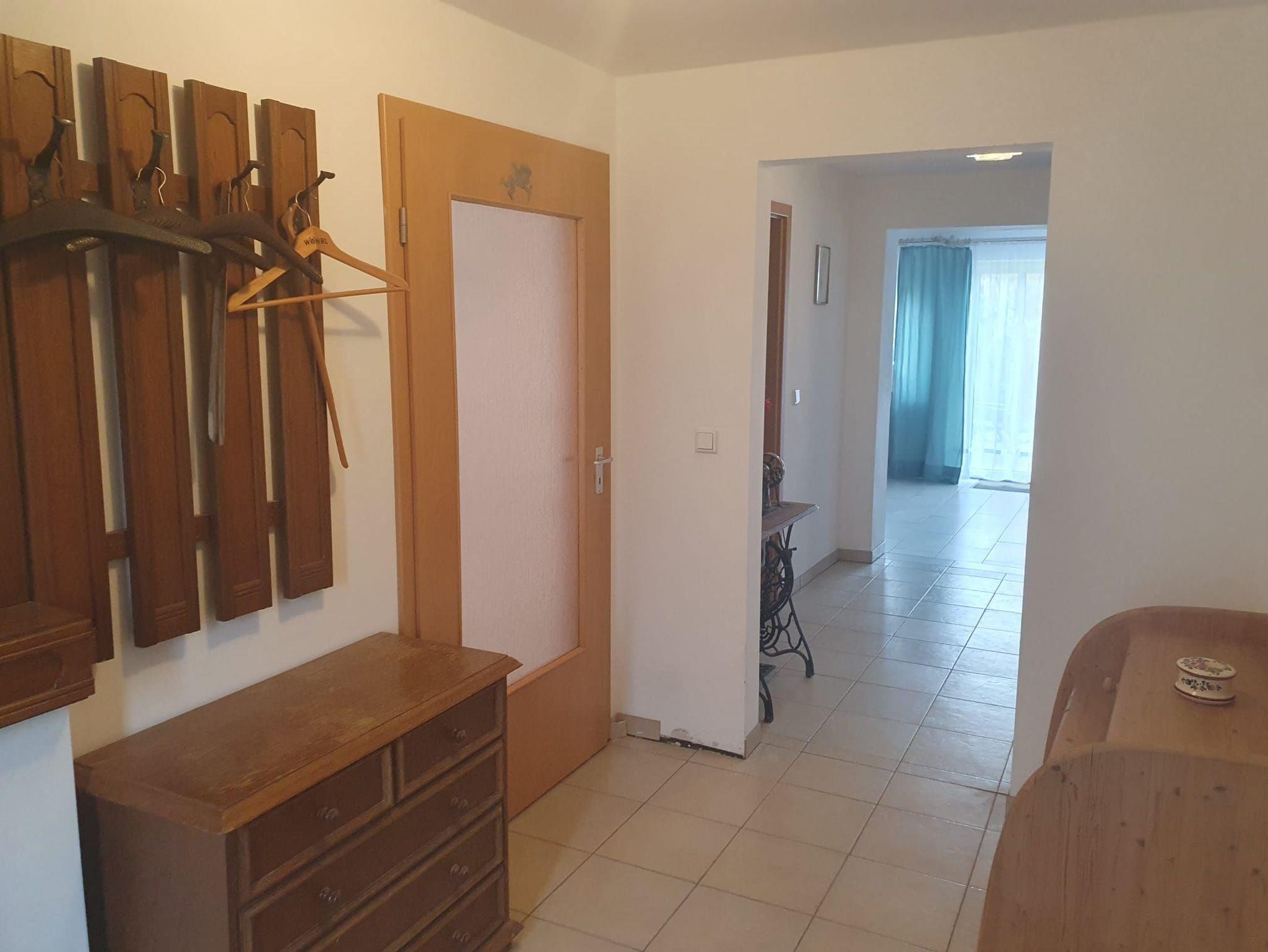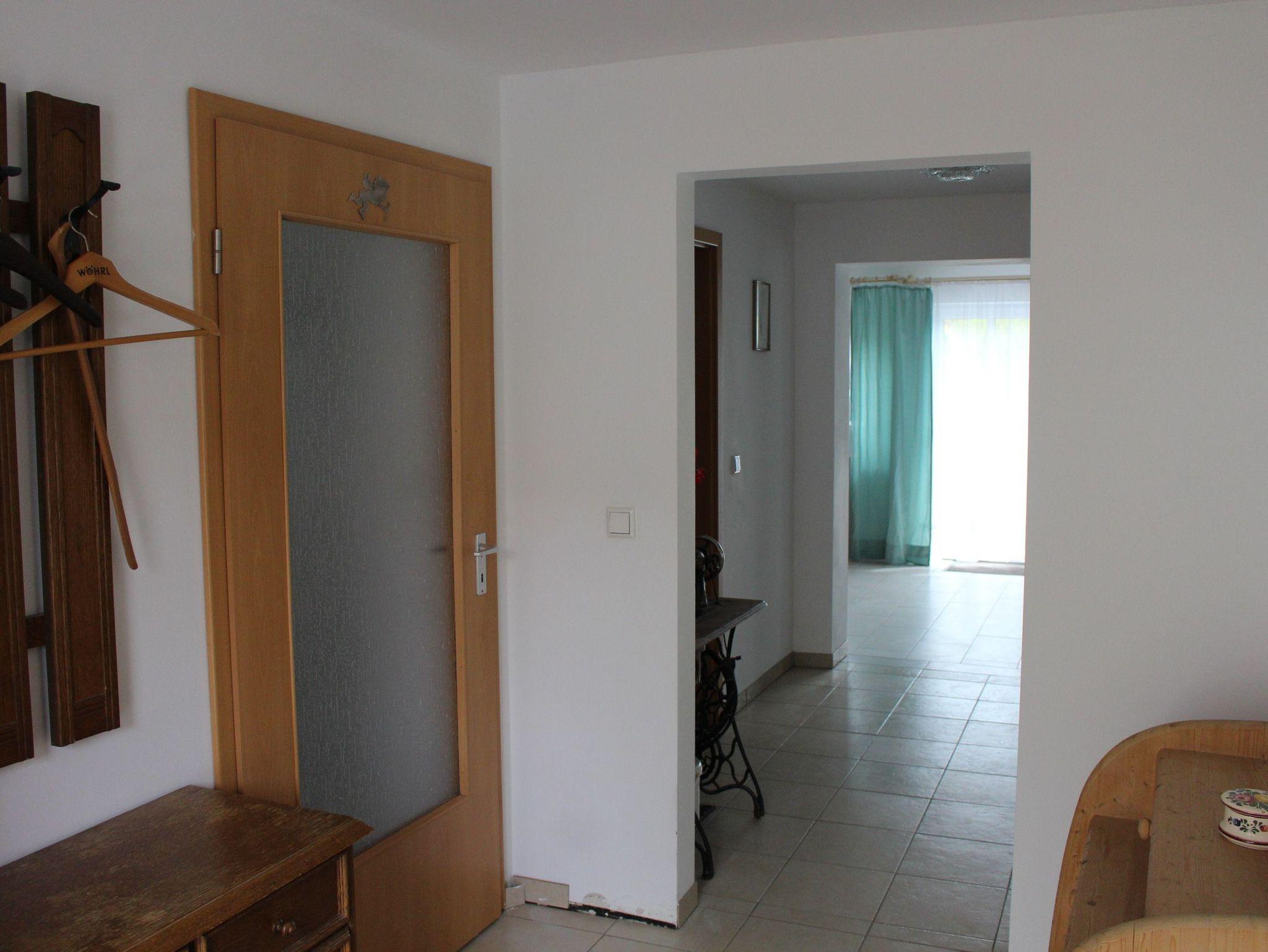 Die Wohnung verfügt über ein Schlafzimmer, einen Vorraum für das Schlafzimmer (ohne Türe zum Schlafzimmer), ein zusätzliches Zimmer mit einem Boxspringbett, einen großen Flur, ein sehr großes helles Wohnzimmer und einer Küche mit Essecke. Es ist eine Erdgeschoßwohnung mit einer Stufe.