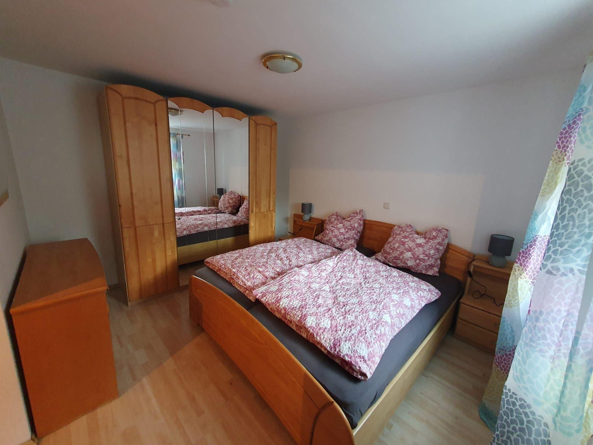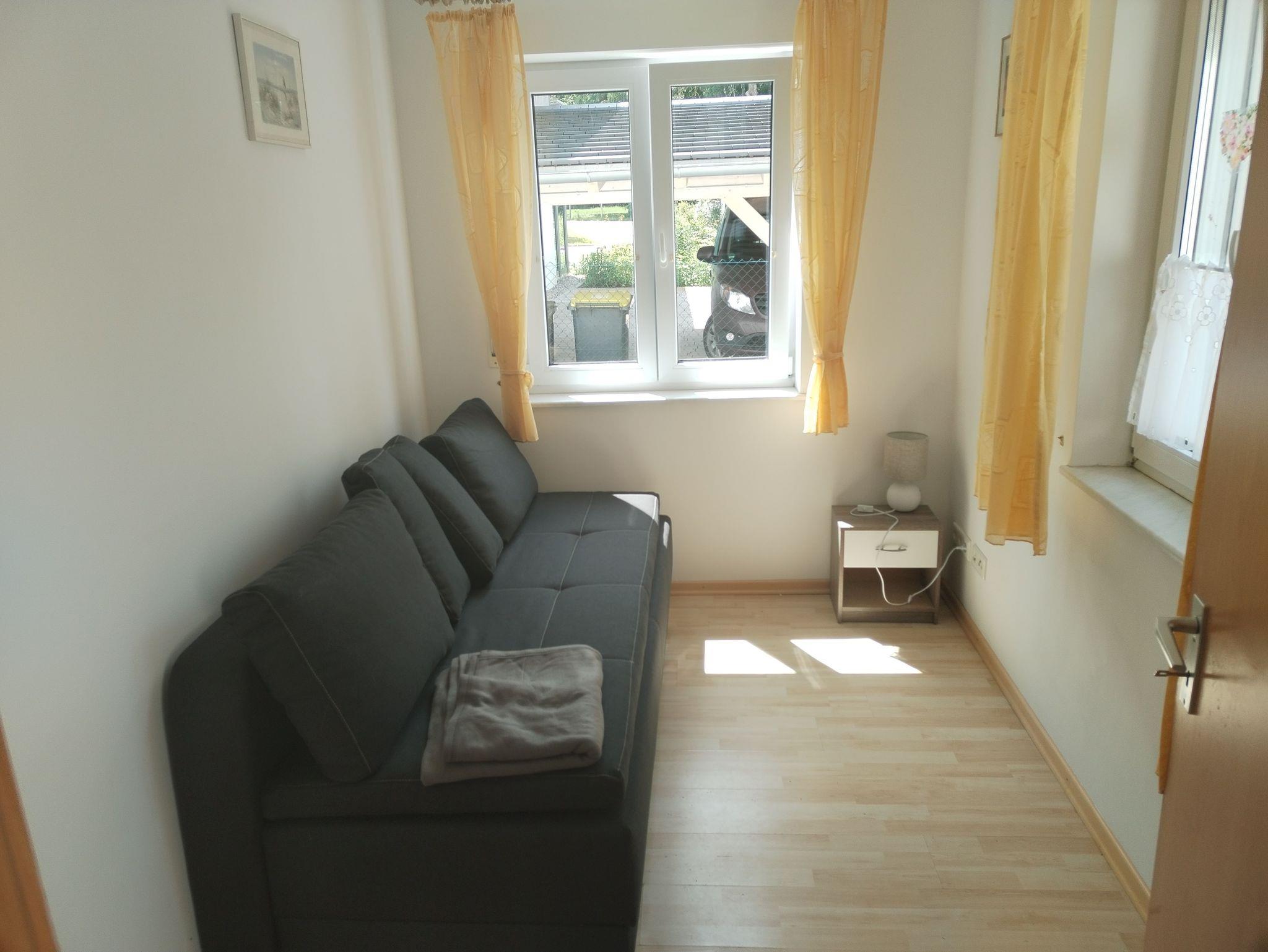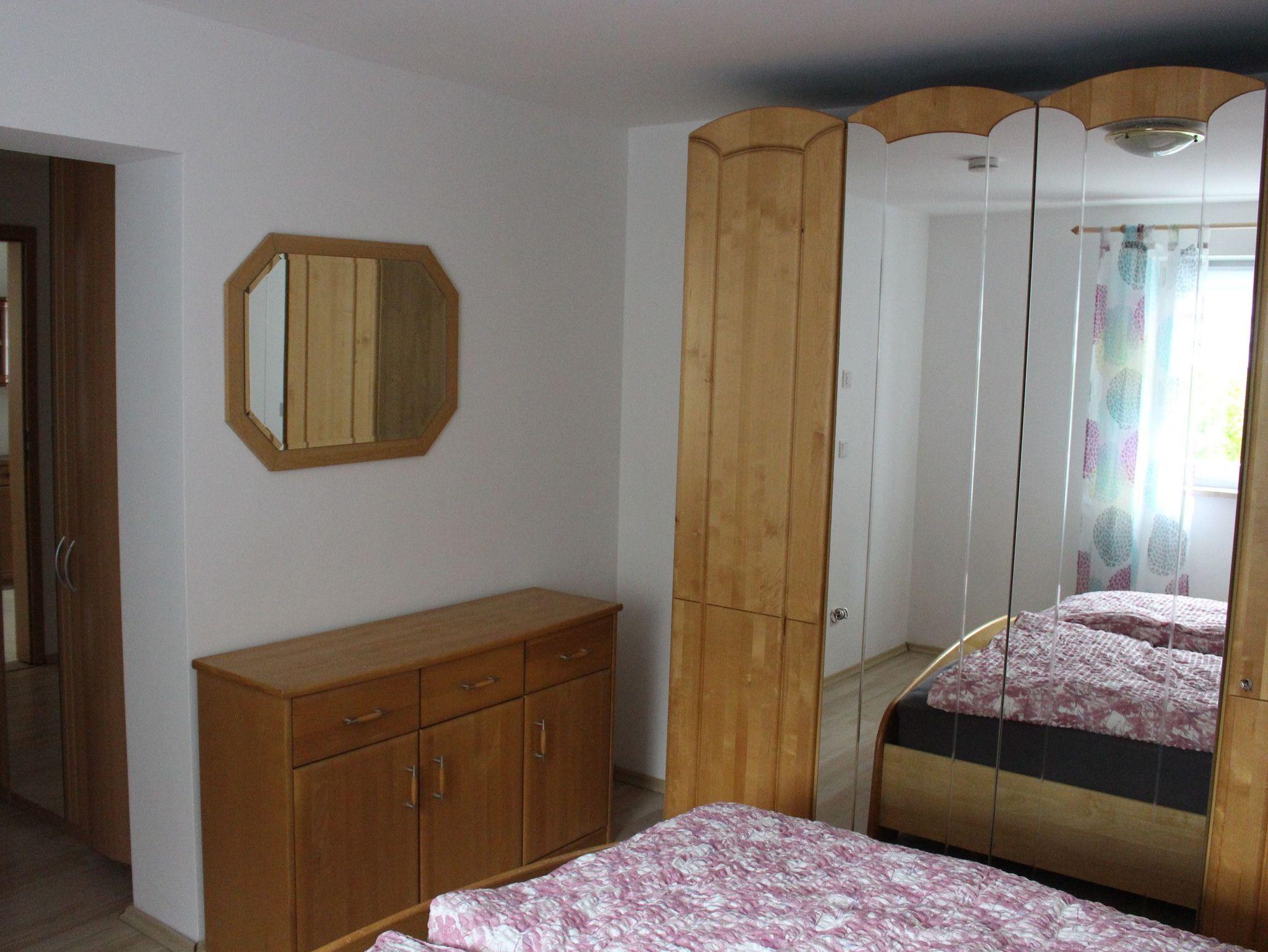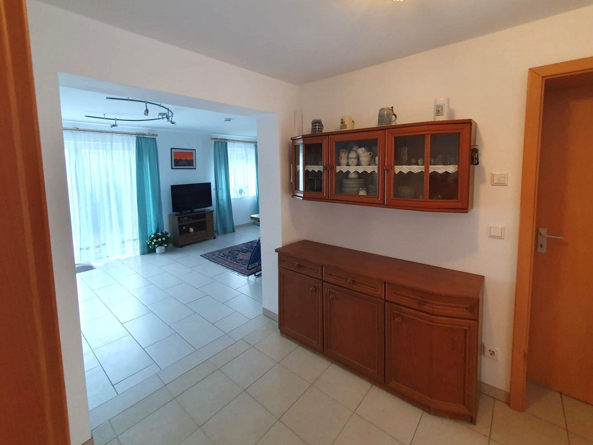 Die Wohnung verfügt über ein Schlafzimmer, einen Vorraum für das Schlafzimmer (ohne Türe zum Schlafzimmer), ein zusätzliches Zimmer mit einem Boxspringbett, einen großen Flur, ein sehr großes helles Wohnzimmer und einer Küche mit Essecke. Es ist eine Erdgeschoßwohnung mit einer Stufe.