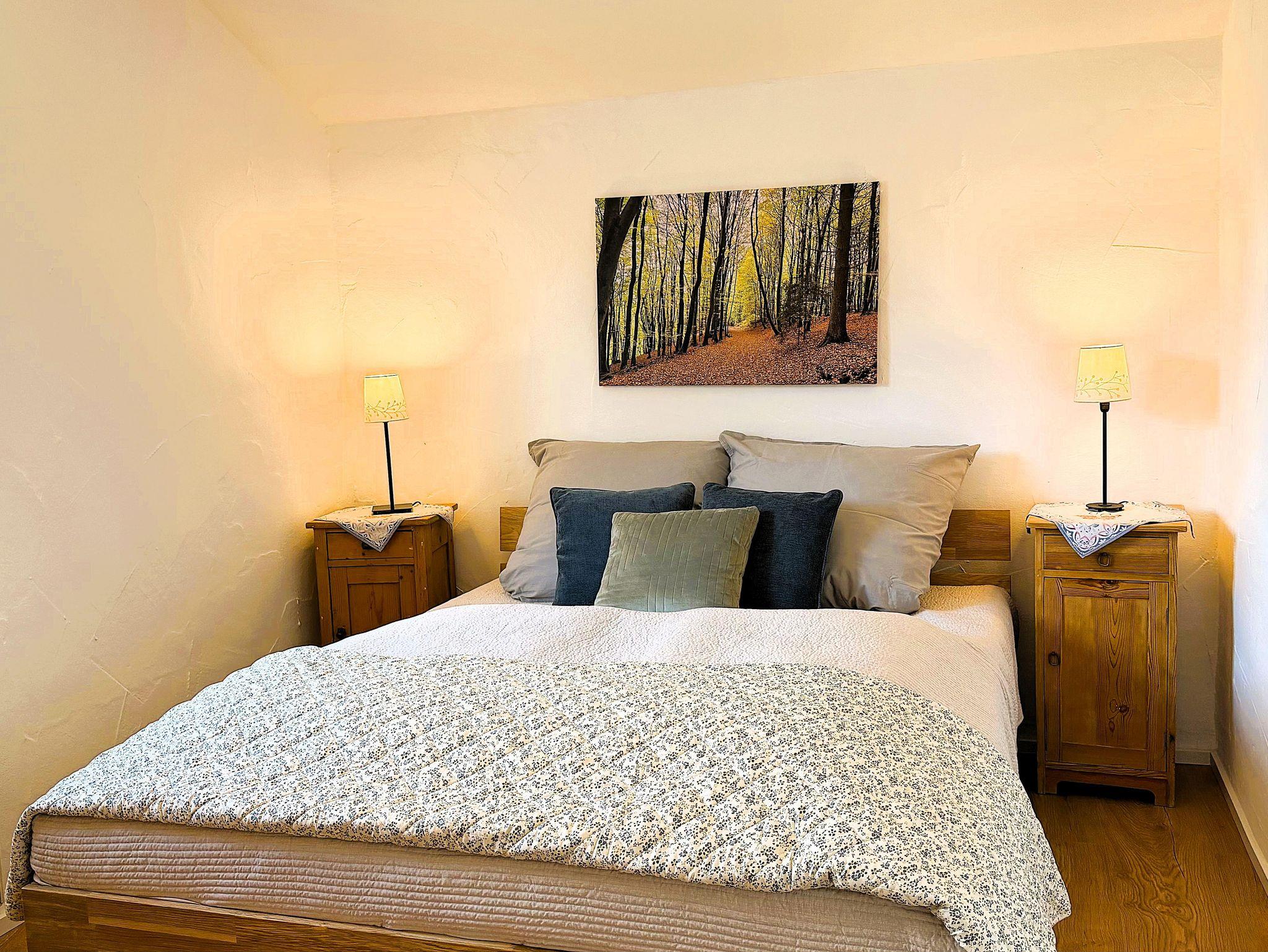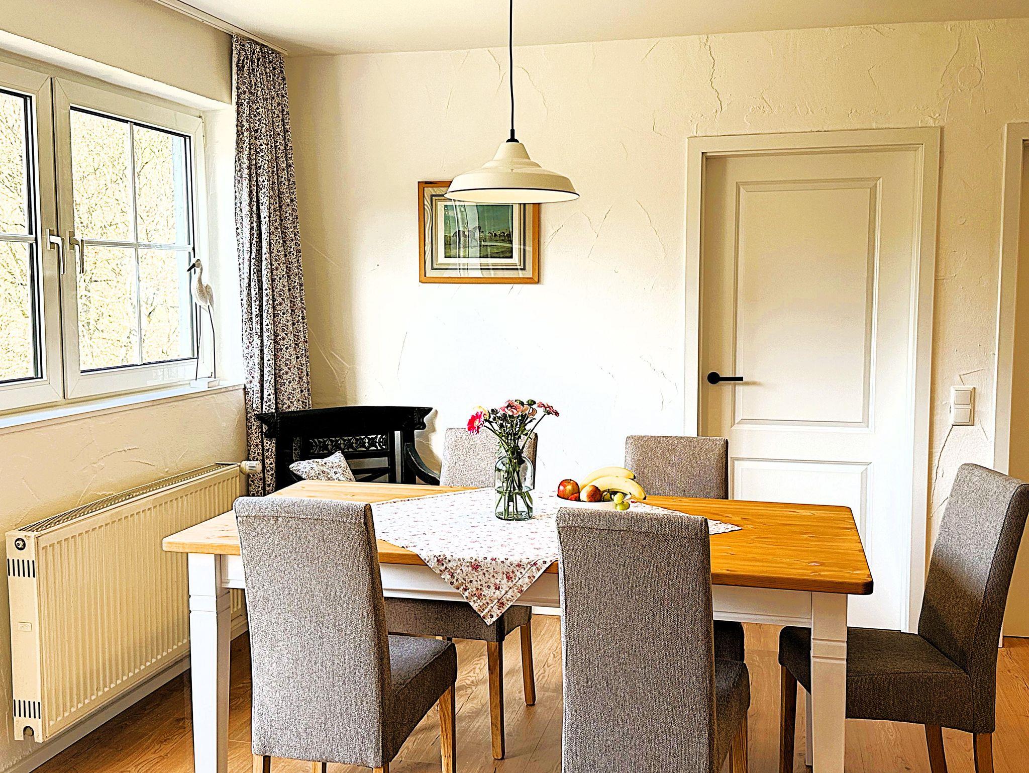 Wunderschöne Ferienwohnung mit einem tollen Blick in ein Wiesental und auf einen ehemaligen Vulkan. Die Ferienwohnung ist ca. 70 m² groß mit einem Schlafzimmer mit Doppelbett, einem 3-Bett-Zimmer (mit Etagenbett), einem Wohnzimmer mit Audio-System und Sat-TV, einer separaten und komplett ausgestatteten Küche und einem Badezimmer mit Dusche und WC. Babybett auf Nachfrage. Fahrräder können am Hofglände abgestellt werden. Auf dem Balkon kannst Du die Aussicht genießen und im Obstgarten auf der Liegewiese relaxen.