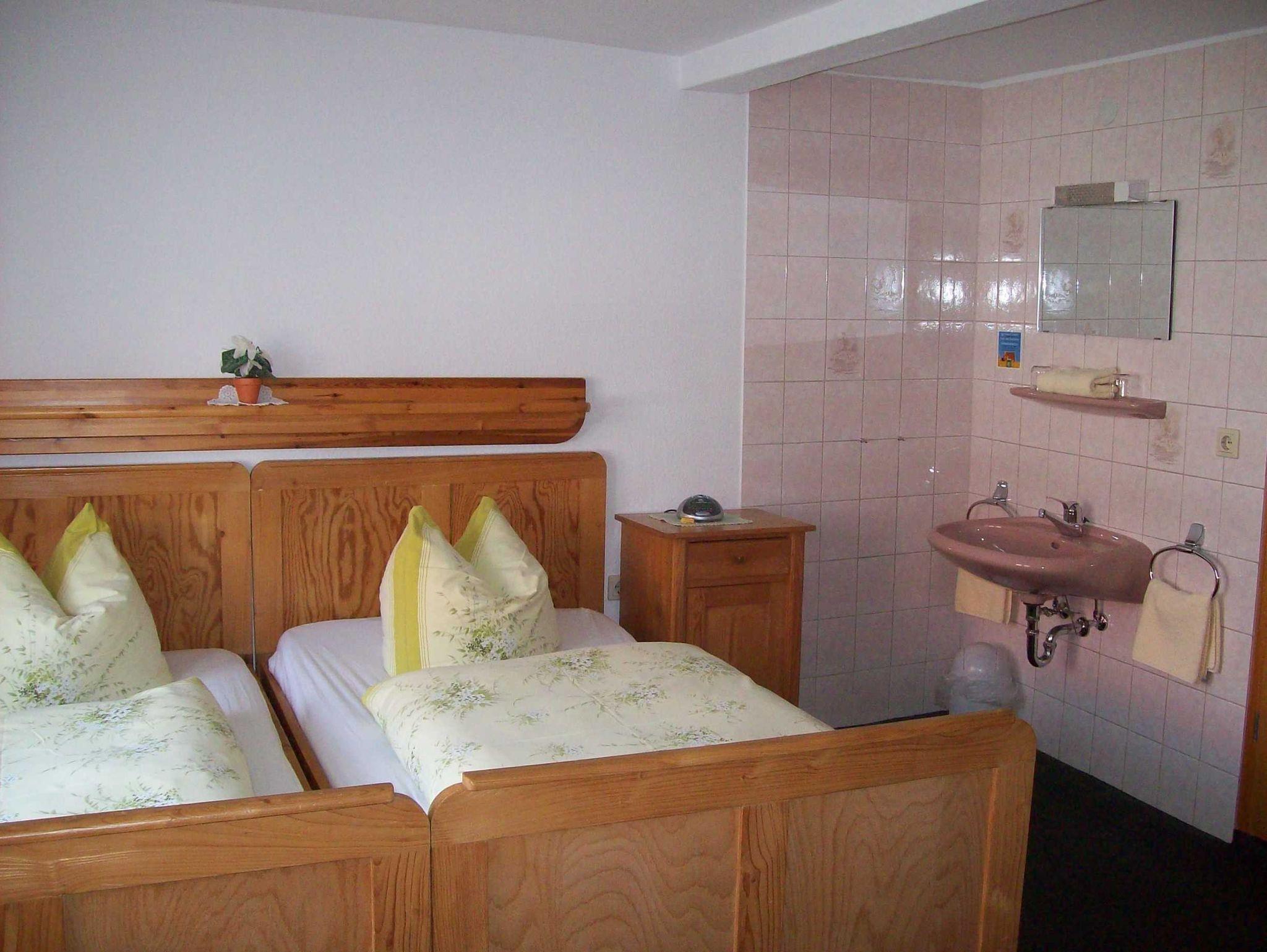 Doppelzimmer mit franz. Bett (Nr. 1) oder Doppelbett KingSize (Nr. 2), TV und Kühlschrank.