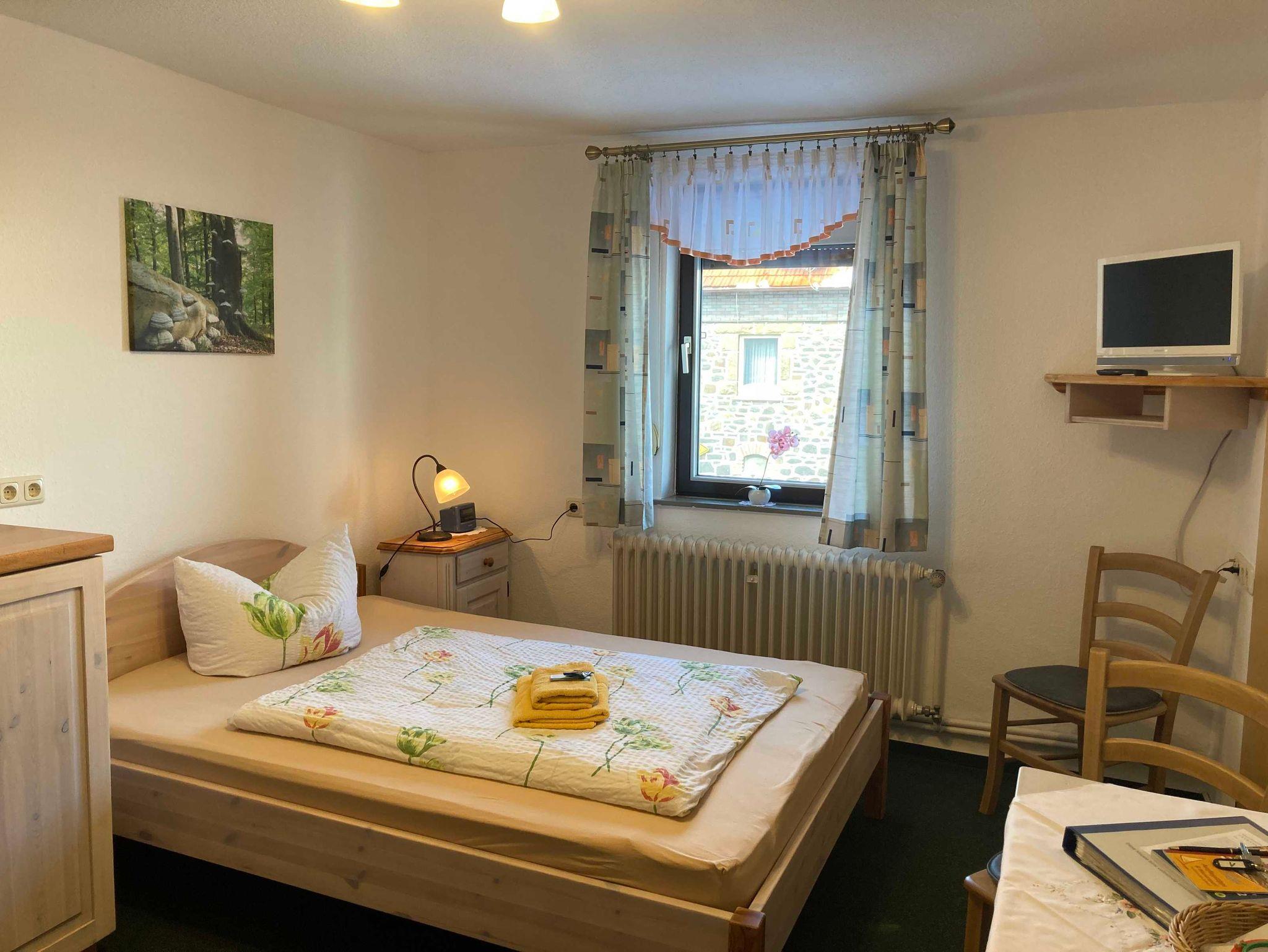 Mit einem französischem Bett (140x200 cm) als Einzel- oder Doppelzimmer nutzbar.