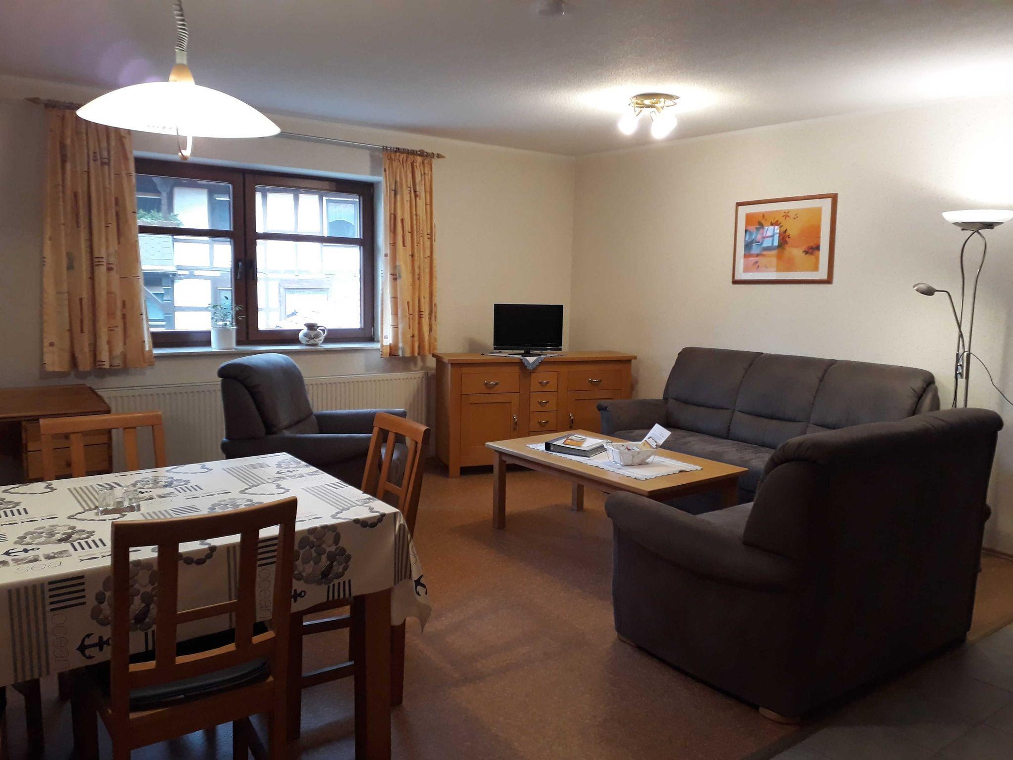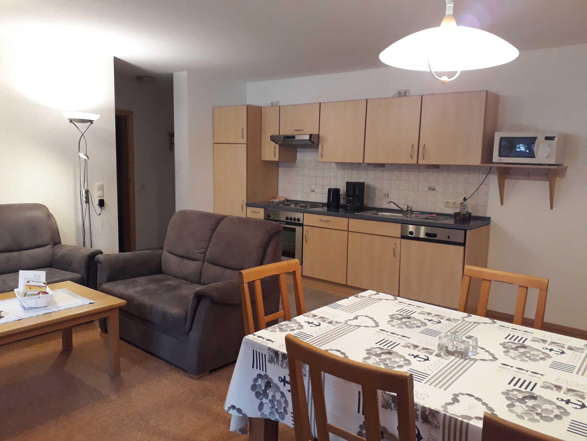 Gemütliche Ferienwohnung im I. OG mit Wohnküche, zwei Schlafräumen, DU/WC mit ebenerdiger Dusche und überdachtem Balkon, Größe ca. 64qm, geeignet für bis zu 6 Personen.