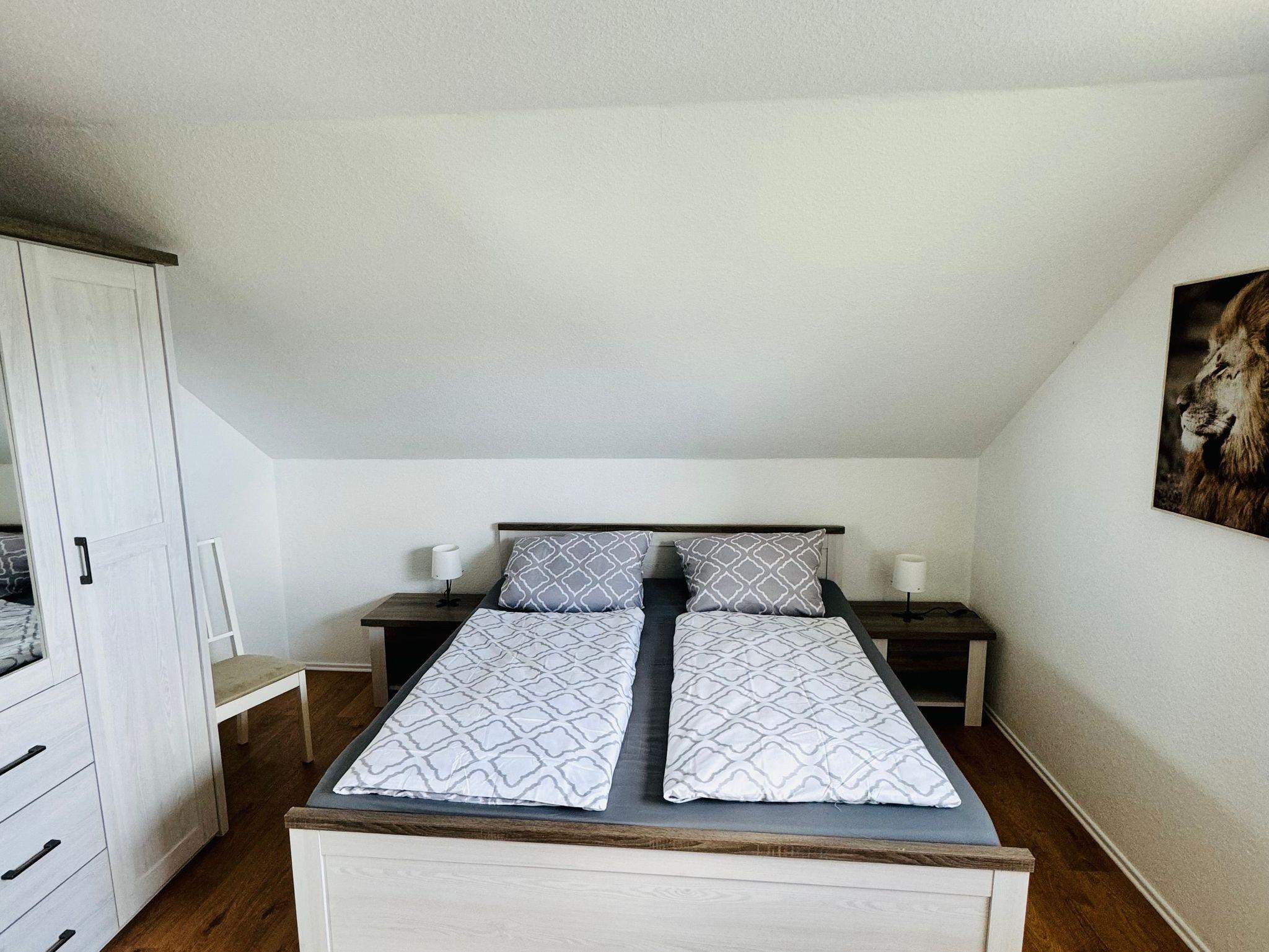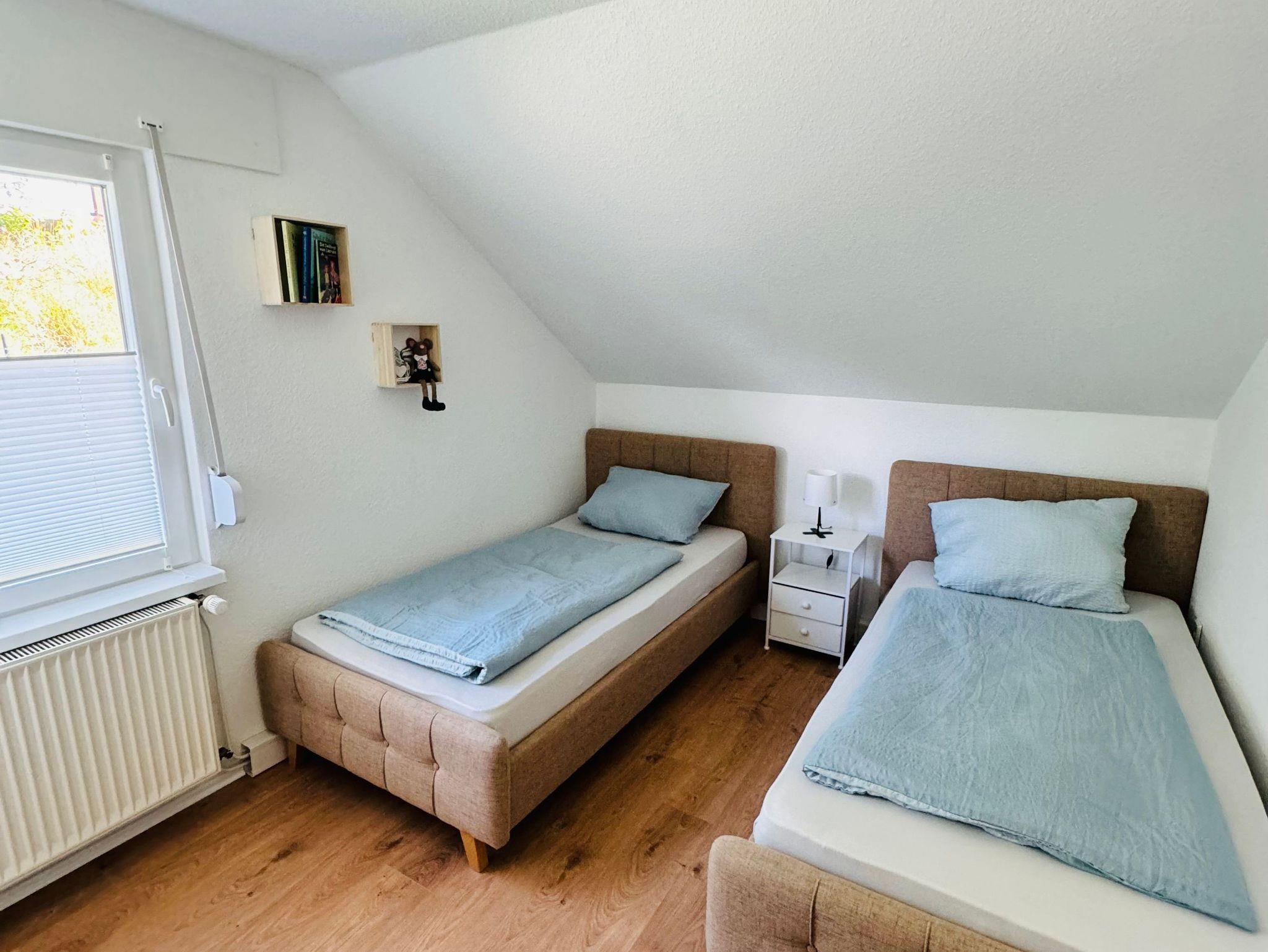 - im Obergeschoss 2 Schlafzimmer mit Doppelbett 1,80x2,00m und ein Schlafzimmer mit 2 Einzelbetten je 1,00x2,00m