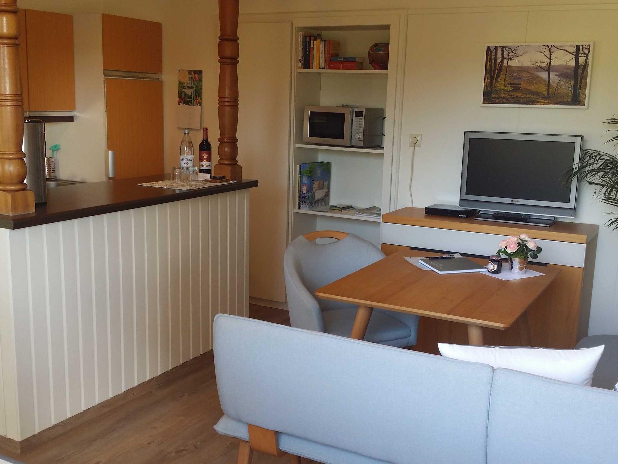 Die kleine gemütliche 50m2 Ferienwohnung/Apartment hat eine Sitzgruppe mit Fernseher, eine offene Küche mit Backofen, einen Herd mit Keramikkochfeld und eine zusätzlicher Mikrowelle. Besteck, Geschirr, Wasserkocher und Kaffemaschine sind vorhanden. Das Schlafzimmer wurde kpl. neu restauriert und liebevoll eingerichtet. Das Bad wurde kpl. erneuert und hochwertig eingerichtet. Die kleine Ferienwohnung hat eine eigene Terrasse mit angeschlossenem Garten.