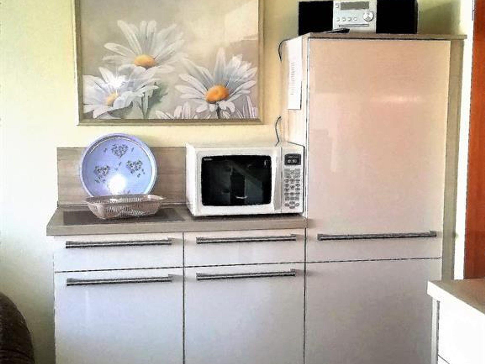große Wohnküche mit komplett eingerichteter Küchenzeile (Gefrierfach, Ceran-Kochfeld, Backofen, Kaffeemaschine, Wasserkocher, Eierkocher, Mikrowelle etc, und gemütlicher Sitzecke (Sofa, Sessel), großes Flachbild-SAT-TV, Telefon, Dusche/WC, Fön, Loggia, auf Wunsch morgendlicher Brötchenservice,