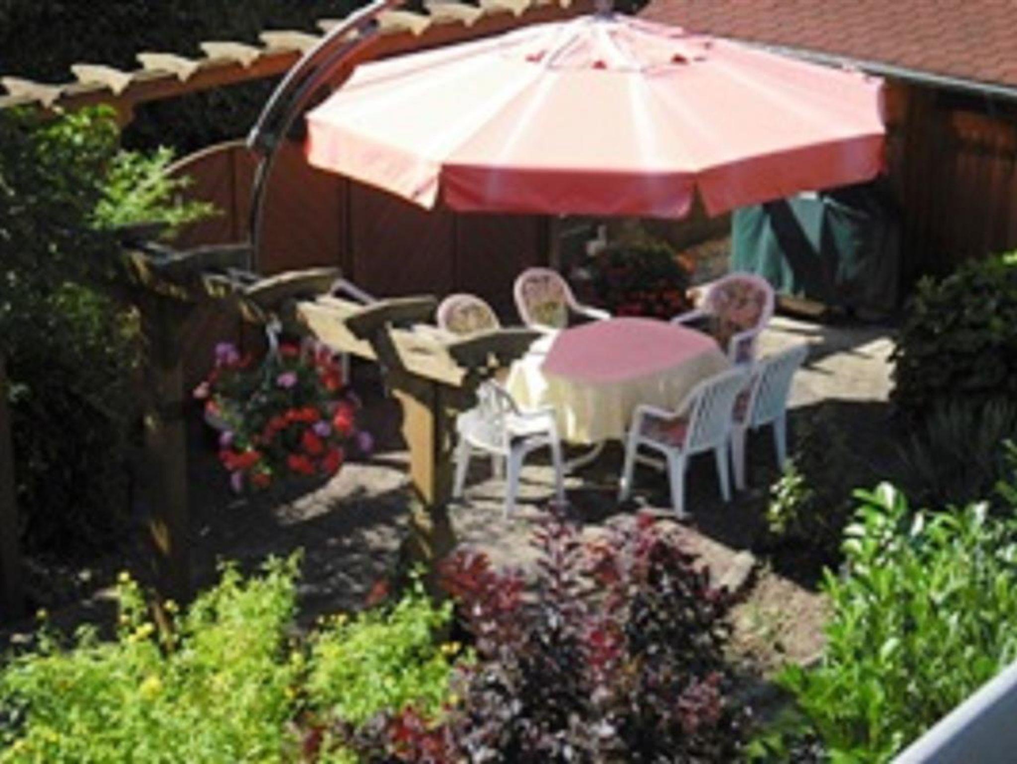 große Liegewiese mit Gartenhaus und Grillecke, Fahrradgarage, Parkplatz direkt vor der Unterkunft