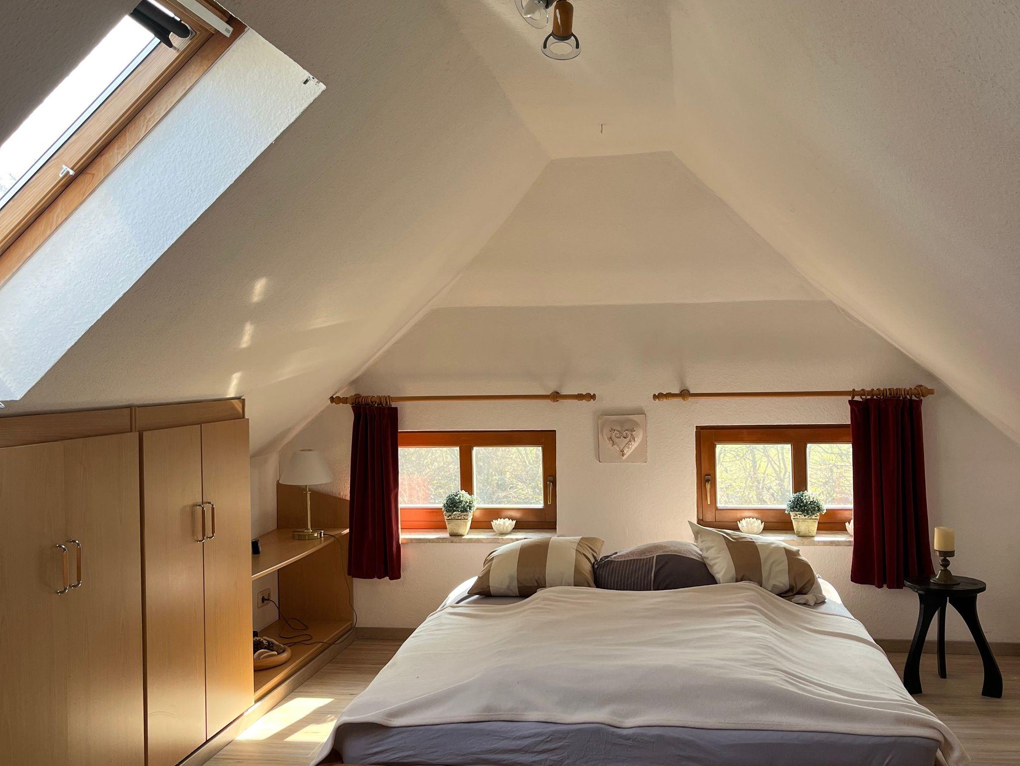 Im Ober-/Dachgeschoss befinden sich das zweite Schlafzimmer und das Duschbad.