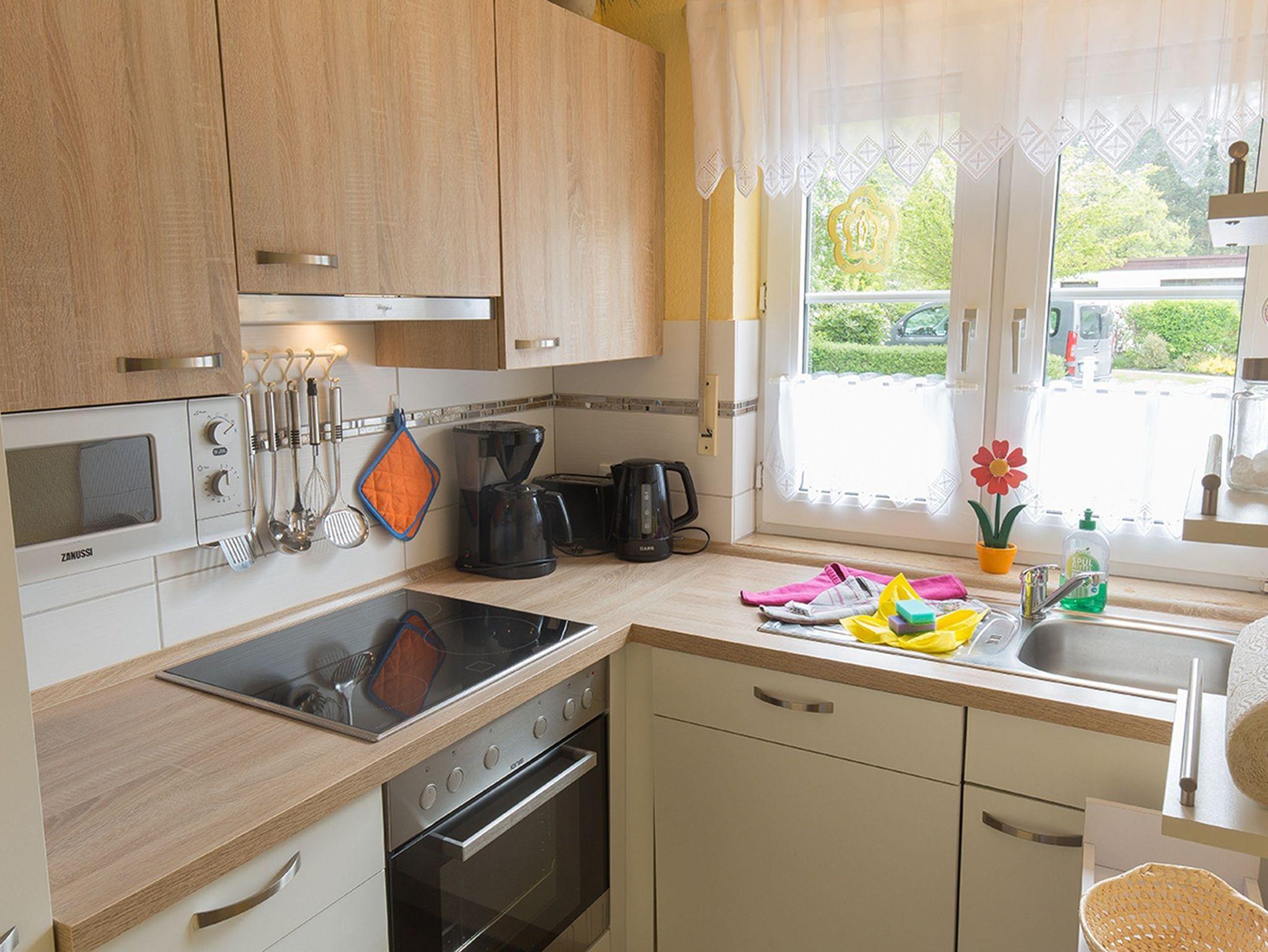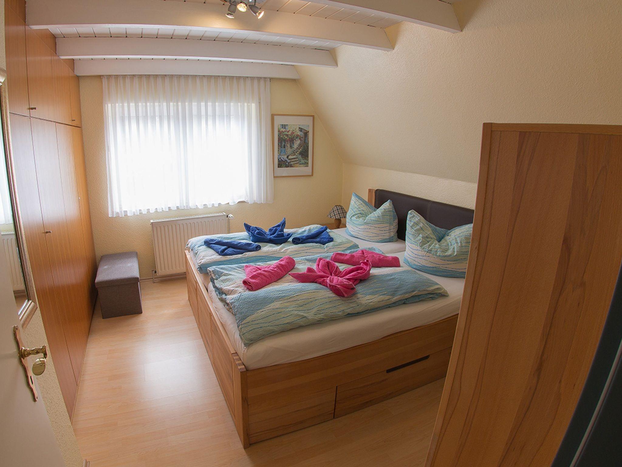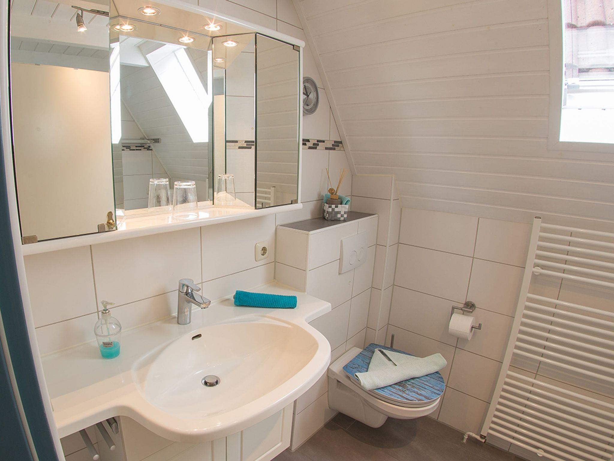 Unser Komfortferienhaus Am Alten Deich ist gemütlich ausgestattet. Durch den Eingangsbereich mit Garderobe und Gäste-WC gelangen Sie in das Wohn-/Esszimmer mit Sat-TV, Blue-Ray Player und der voll ausgestatteten Küchenzeile. Im Obergeschoß befinden sich zwei Schlafzimmer und das Duschbad. Das erste Schlafzimmer hat ein Doppelbett mit höhenverstellbaren Lattenrosten; das weitere Schlafzimmer zwei Einzelbetten mit ebenfalls verstellbaren Lattenrosten.